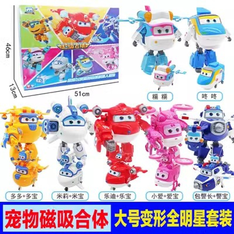 정품 플라잉 맨 대형 변형 로봇 장난감 세트 Ledi Dazhuang Xiao Ai Duoduo Yuan Yuanbao 보안관