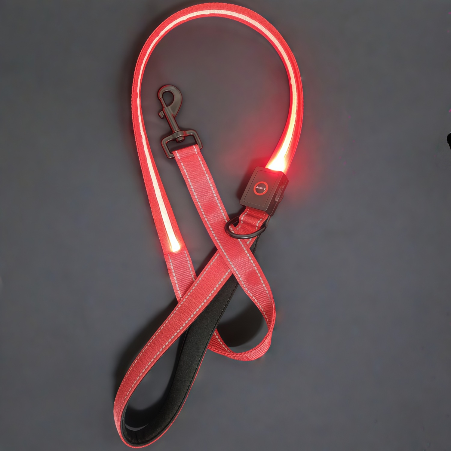 USB 충전식 LED 발광 개목줄, 반사 나일론 웨빙, 애완동물 야간 산책용 선물, 야광 대형견용
