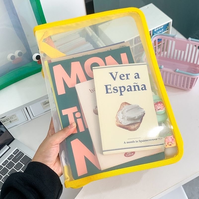 투명 지퍼 문서 가방 A4 대용량 대학생 컬러 시험지 교과서 새로운 휴대용 휴대용 보관 가방스토어 가기
