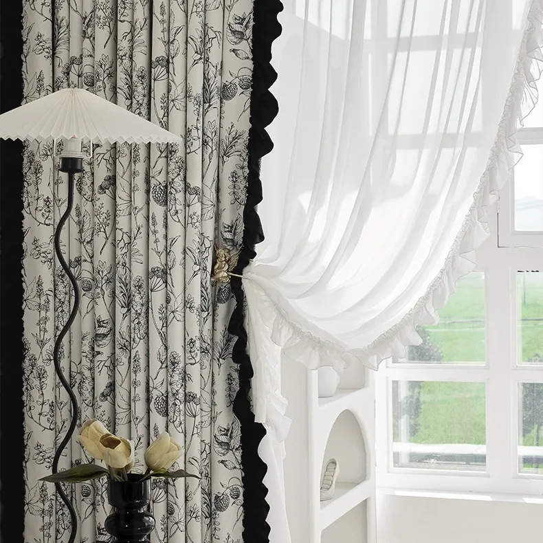 크림풍 면 느낌의 커튼 주름 레이스 프렌치 러플 나무 껍질 레이스 사이드 트림 액세서리