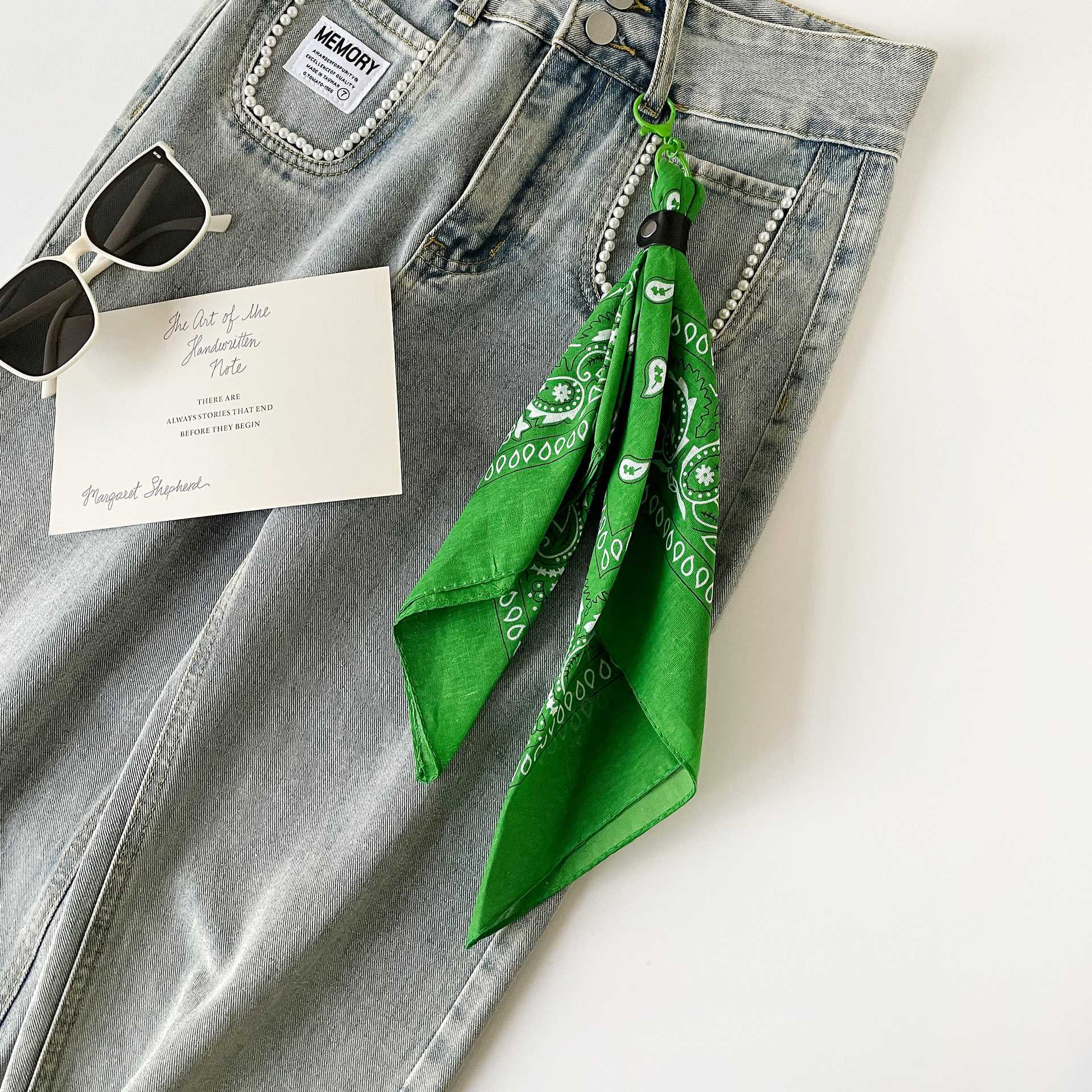 유럽과 미국의 캐슈 플라워 50개의 사각형 스카프, 다재다능한 트렌디한 스트리트 바지 스카프, 힙합 허리 스카프, 힙합 리본, 바지 걸이 장식