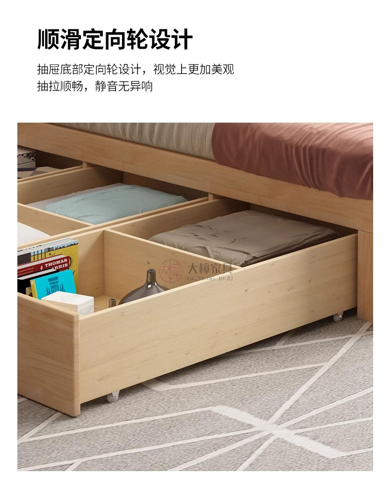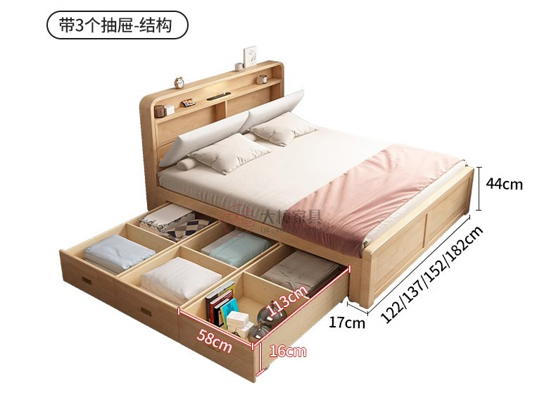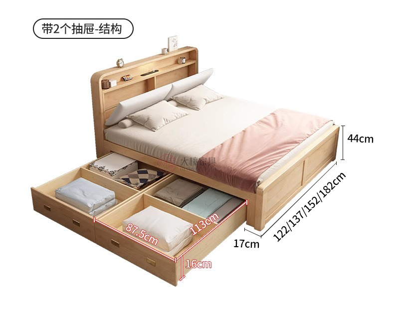 • 135*200CM [박스 프레임 구조(서랍 2개 또는 3개)] 기능성 원목 침대 시트, 로그/화이트/월넛/BMW 그레이