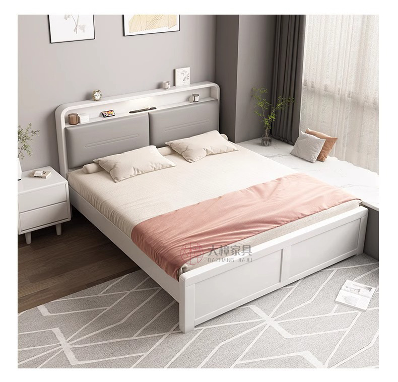 • 200*220CM [프레임 구조], 기능성 원목 침대 + 침대 옆 탁자 2개, 로그/화이트/월넛/BMW 그레이