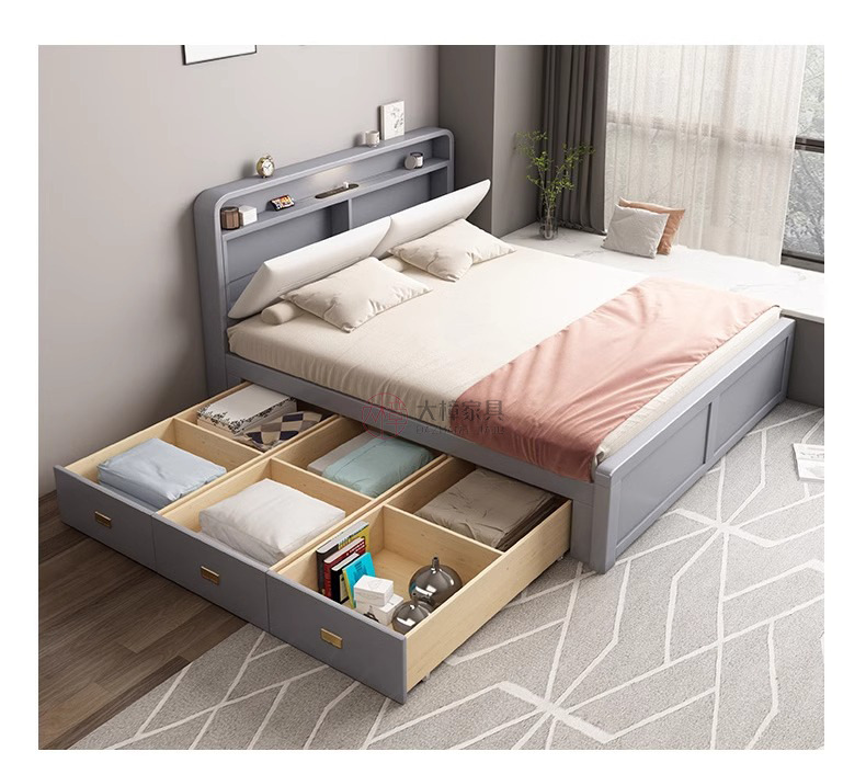 • 150*200CM [박스 프레임 구조(서랍 2개 또는 3개)] 기능성 원목 침대 시트, 로그/화이트/월넛/BMW 그레이