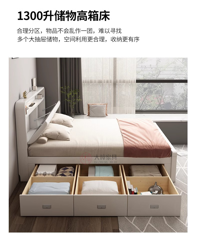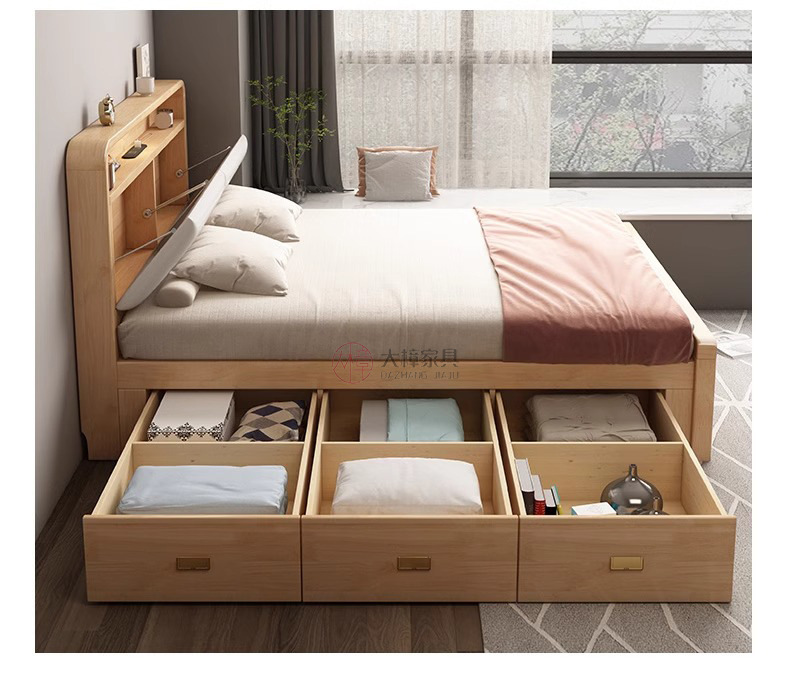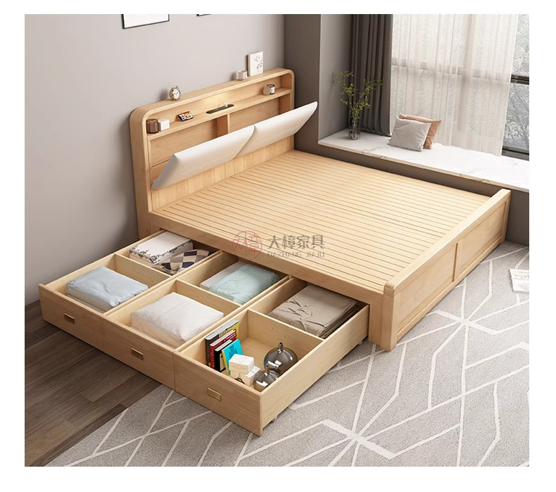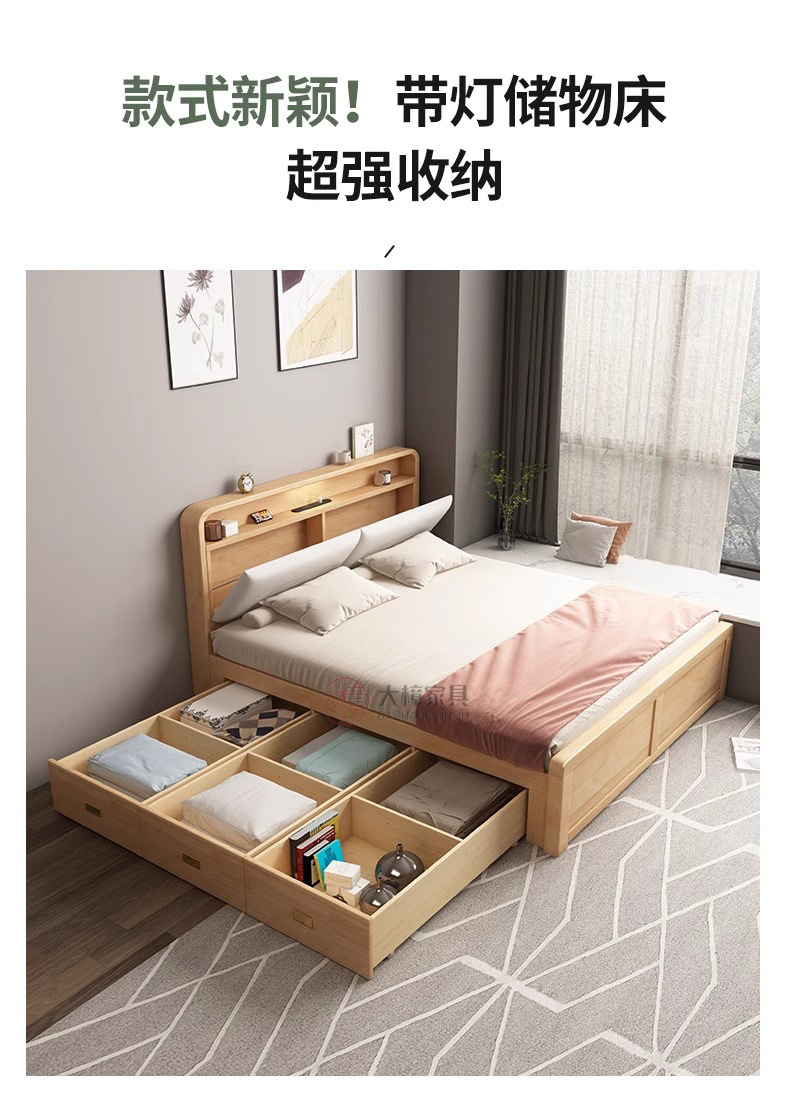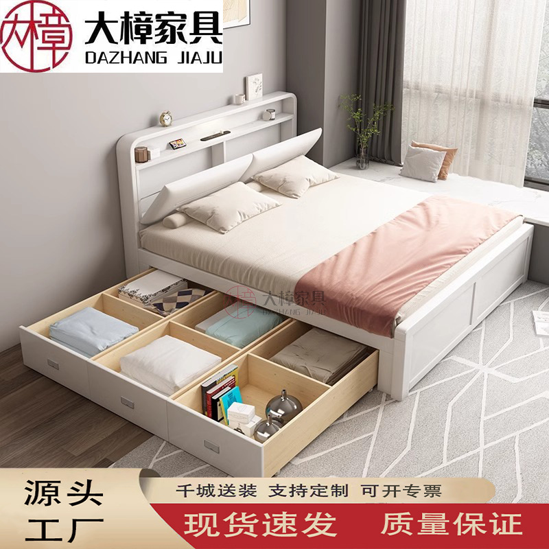 모든 단단한 나무 침대 높은 상자 보관 서랍 침대 북유럽 1.8m 현대 단순 기능성 1.5 마스터 침실 더블 웨딩 침대스토어 가기