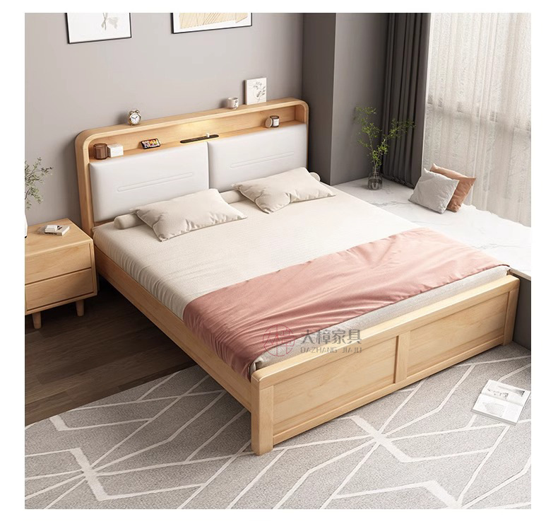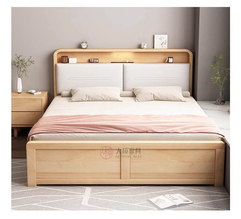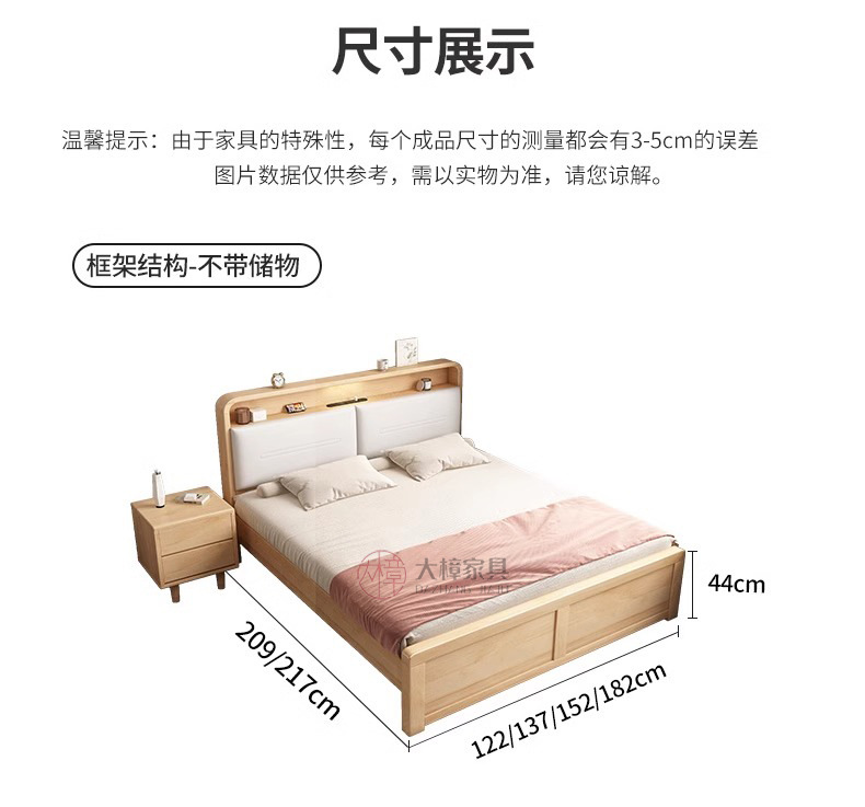 • 200*220CM [프레임 구조], 기능성 원목 침대 + 침대 옆 탁자 1개, 로그/화이트/월넛/BMW 그레이