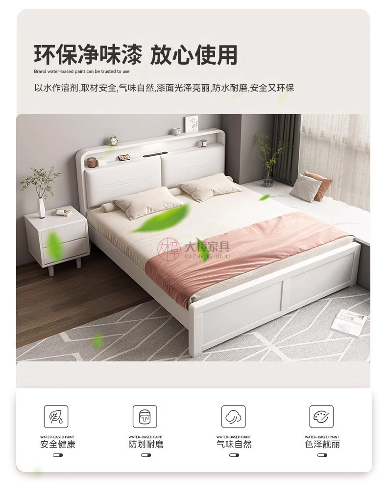 • 180*200CM [프레임 구조], 기능성 원목 침대 + 친환경 라텍스 매트리스, 로그/화이트/월넛/BMW 그레이