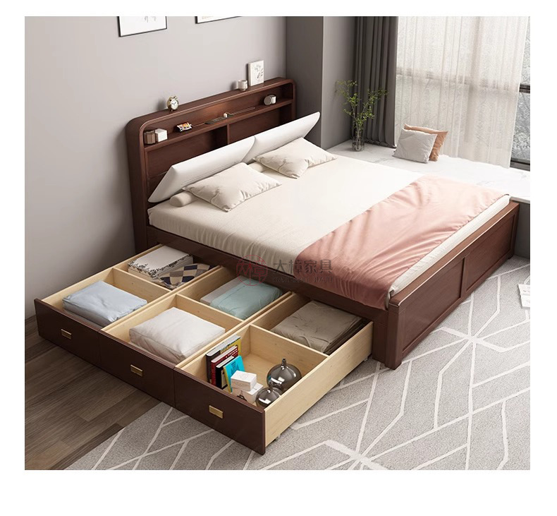 • 200*220CM [박스 프레임 구조(서랍 2개 또는 3개)] 기능성 원목 침대 시트, 로그/화이트/월넛/BMW 그레이