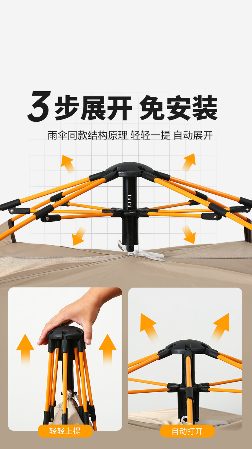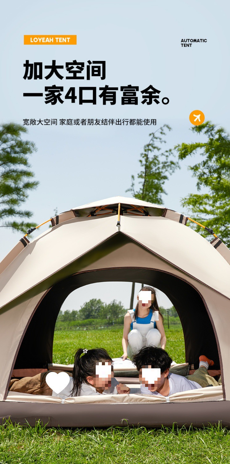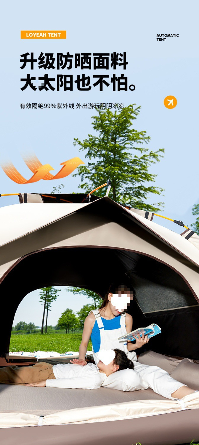 3~4인 가족을 위한 야외 캠핑 및 밤새도록 사용할 수 있는 완전 자동 텐트, 두꺼운 방수 단층 및 이중층 야외 캠핑 세트 공장스토어 가기