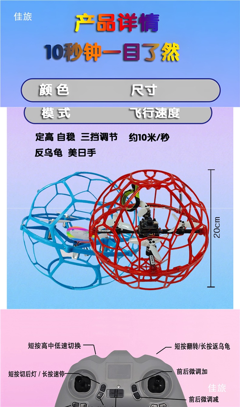 축구 드론 경주 공 모양의 원격 제어 항공기 모델 공중 쿼드콥터 청소년 경쟁 항공기