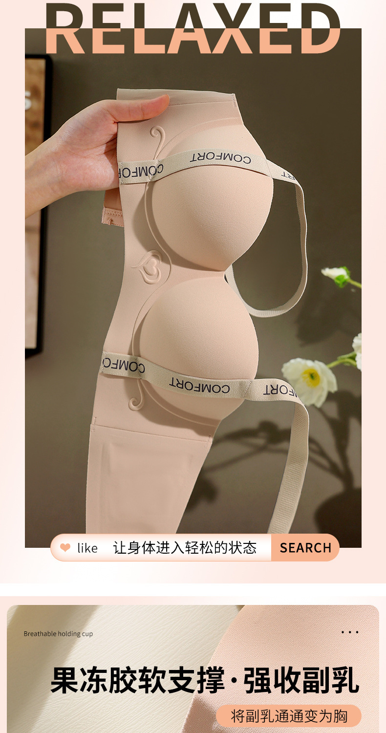 동남아시아 국경 간 복숭아 하트 반컵 작은 가슴 푸시 업 여성용 노와이어 속옷, 가슴 수축 및 처짐 방지 브라스토어 가기