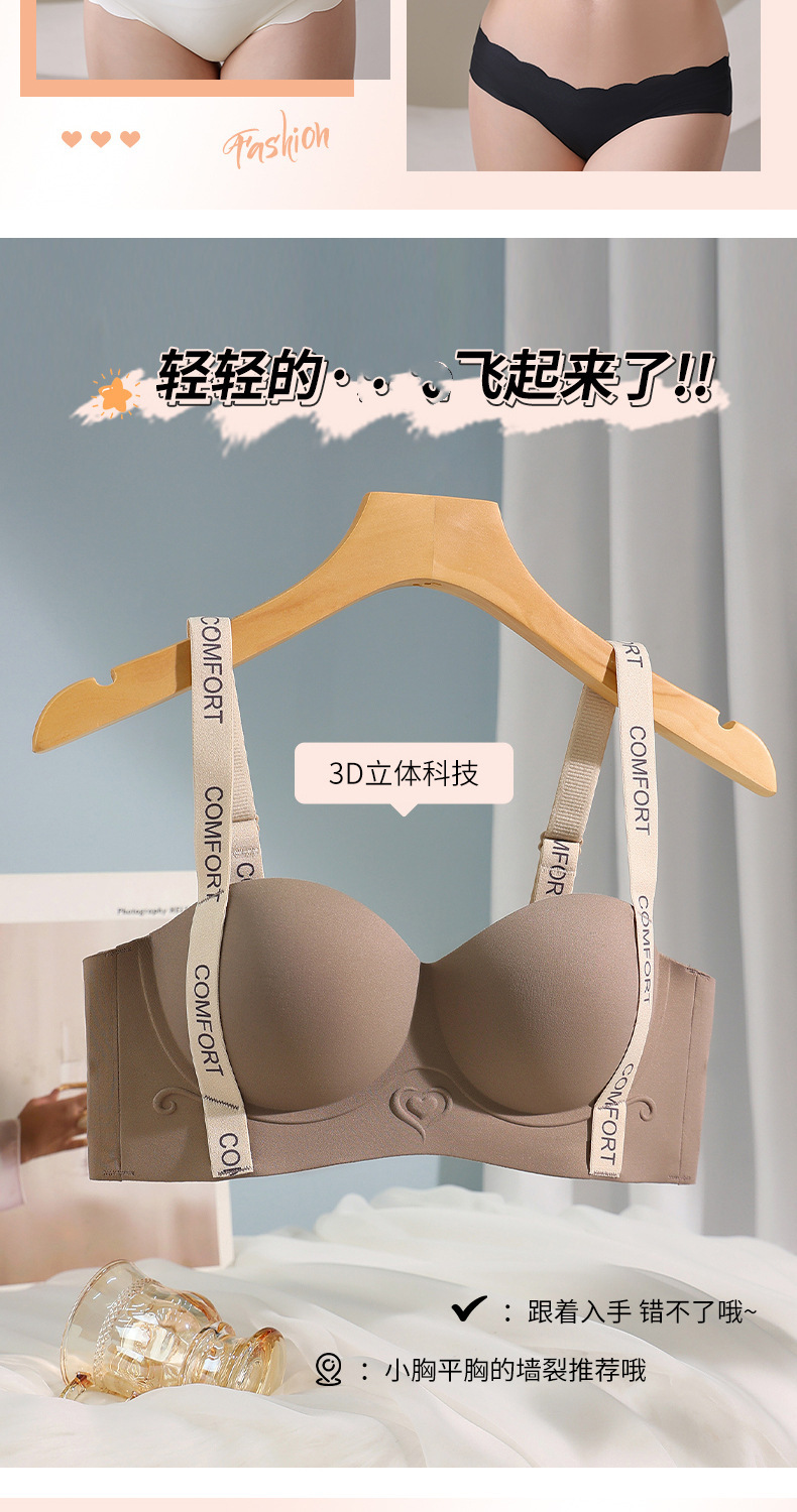 동남아시아 국경 간 복숭아 하트 반컵 작은 가슴 푸시 업 여성용 노와이어 속옷, 가슴 수축 및 처짐 방지 브라