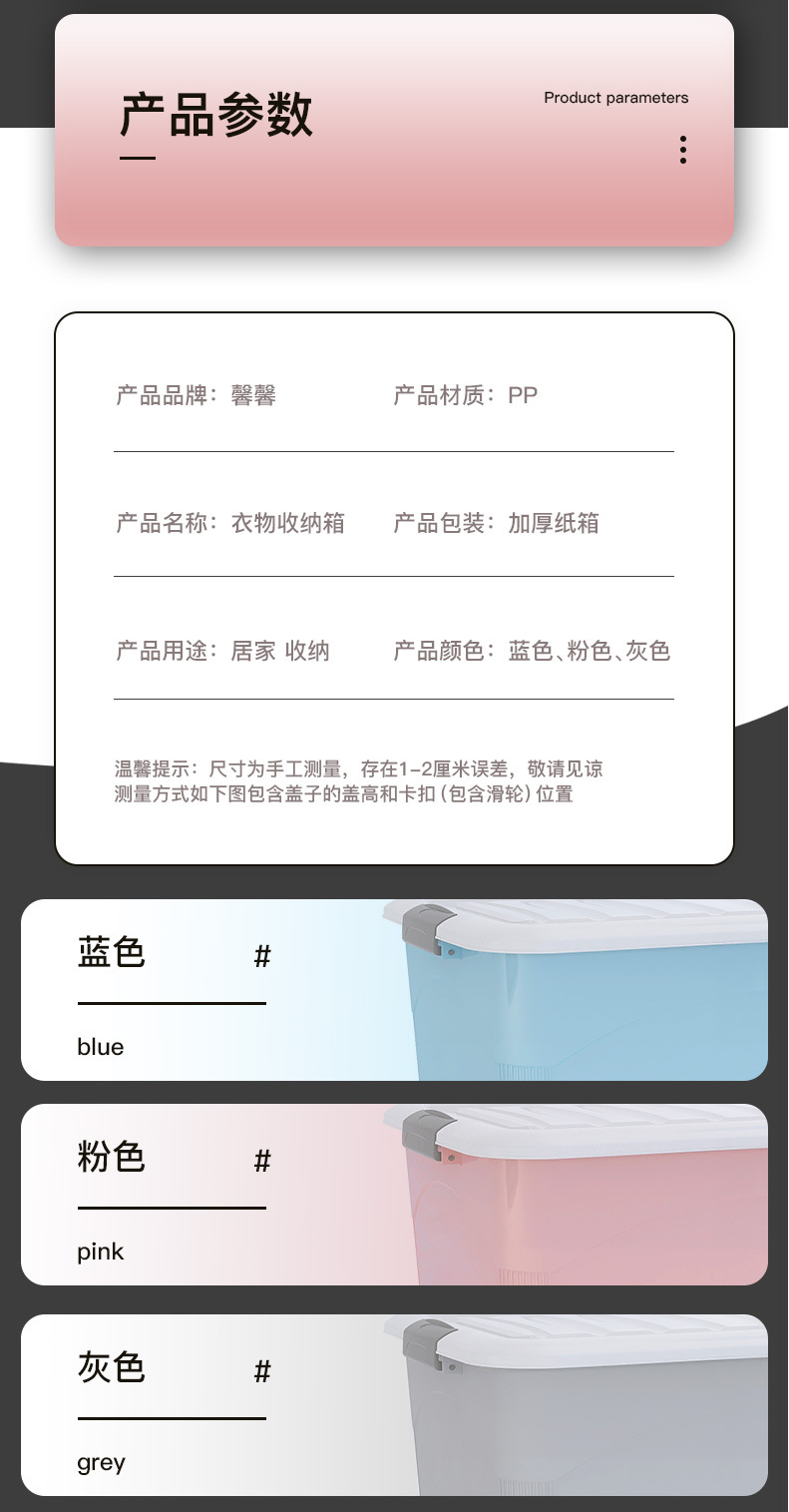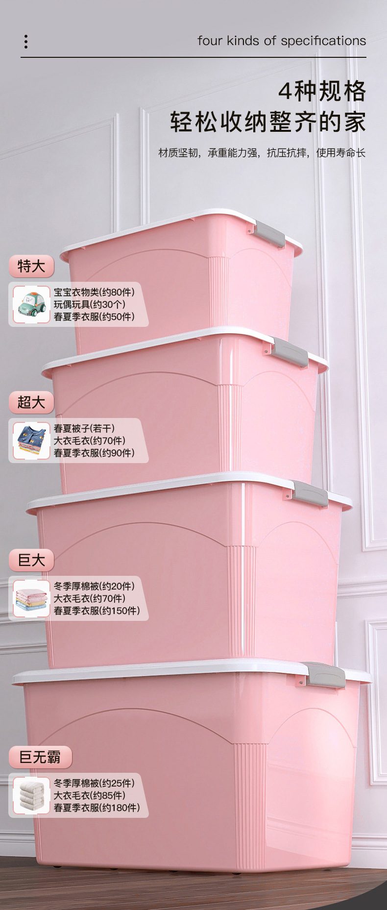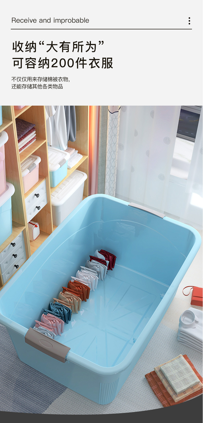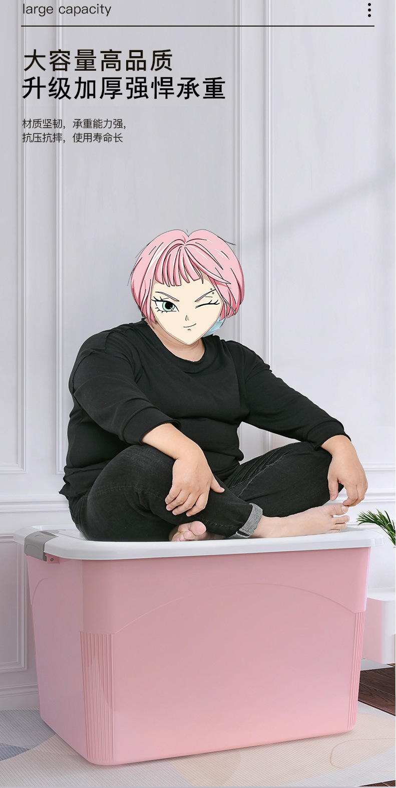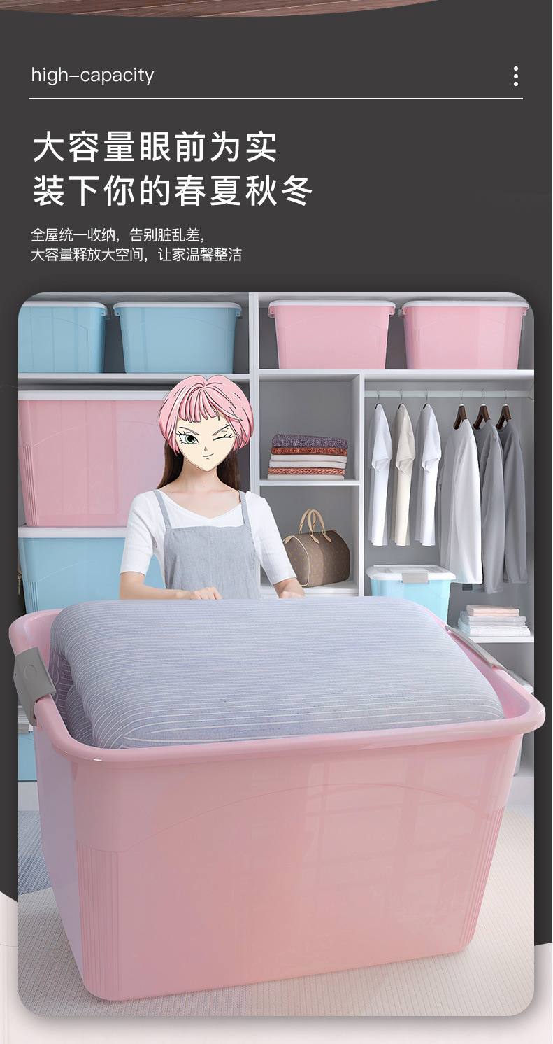 대용량 보관 상자 플라스틱 초대형 의류 및 장난감 보관 상자 초대형 가정용 보관 상자 바구니