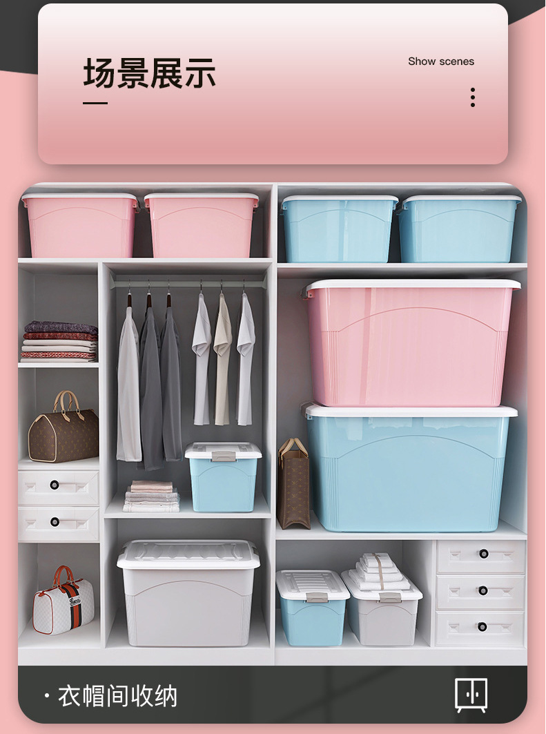 대용량 보관 상자 플라스틱 초대형 의류 및 장난감 보관 상자 초대형 가정용 보관 상자 바구니스토어 가기
