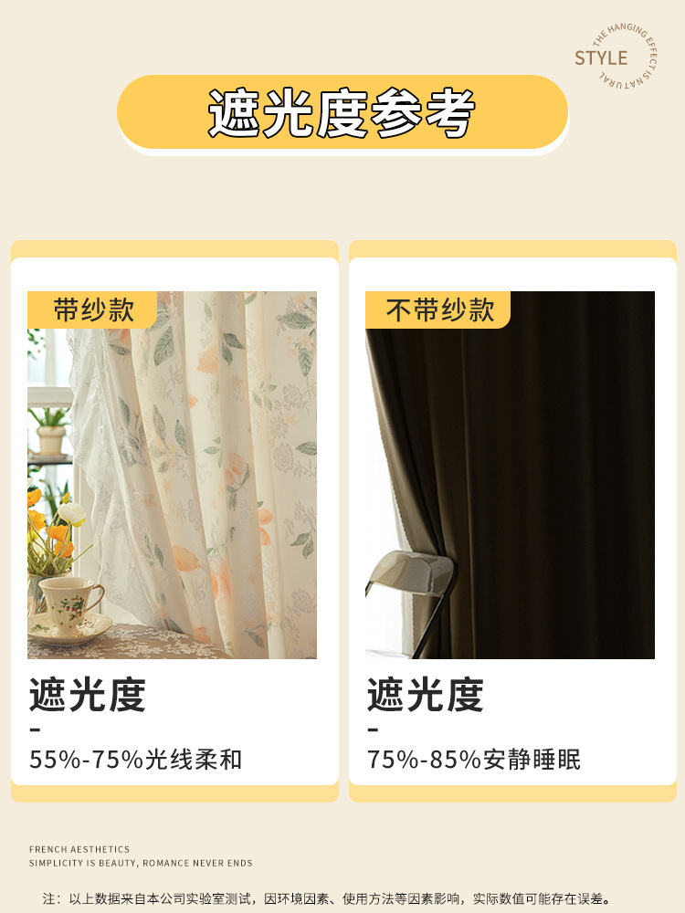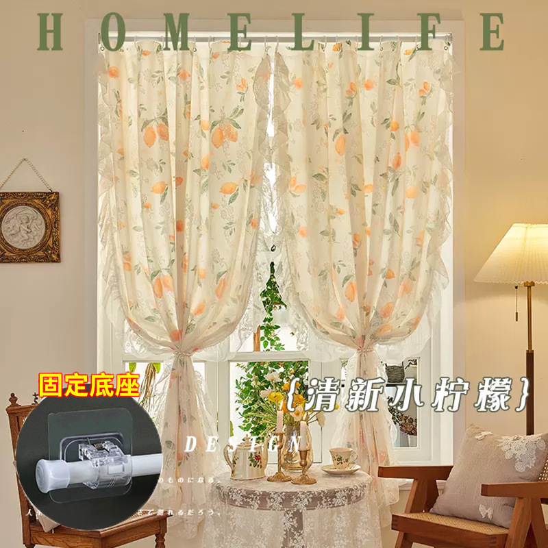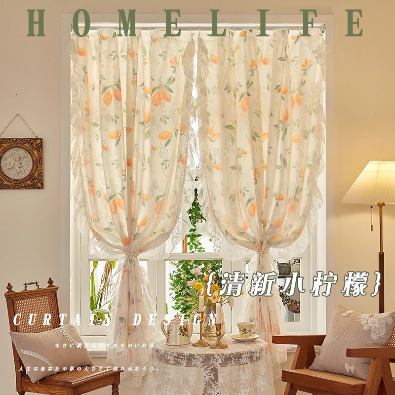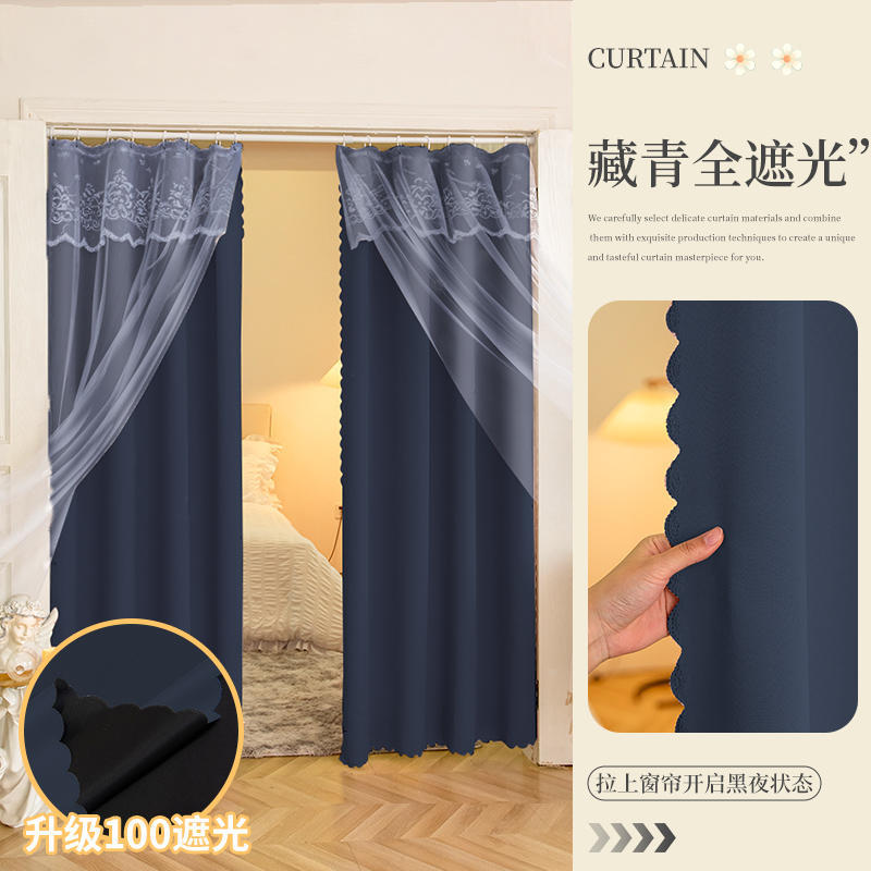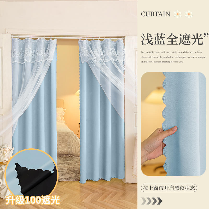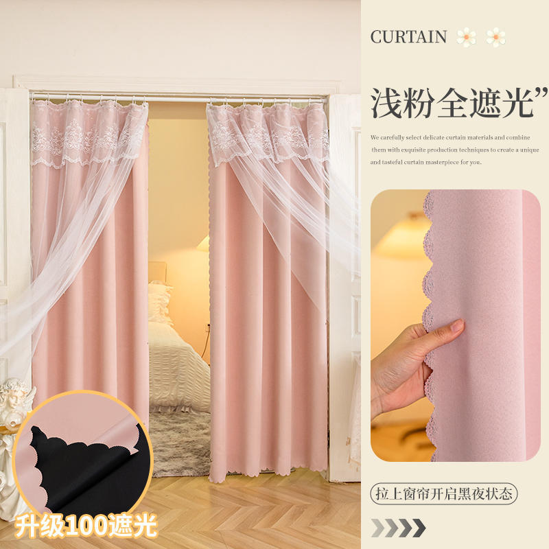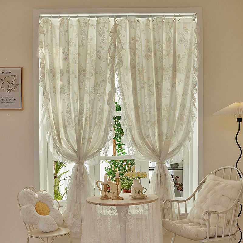 프랑스 복고풍 목가적 인 꽃 무늬 더블 레이어 레이스 커튼 빛 차단 2024 새로운 펀치없는 설치 천 침실 거즈 커튼