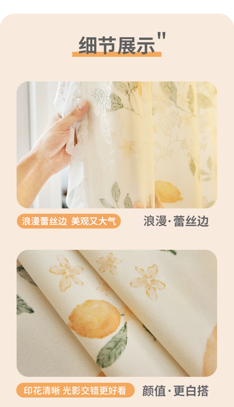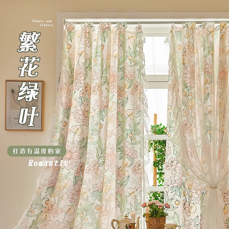 프랑스 복고풍 목가적 인 꽃 무늬 더블 레이어 레이스 커튼 빛 차단 2024 새로운 펀치없는 설치 천 침실 거즈 커튼스토어 가기