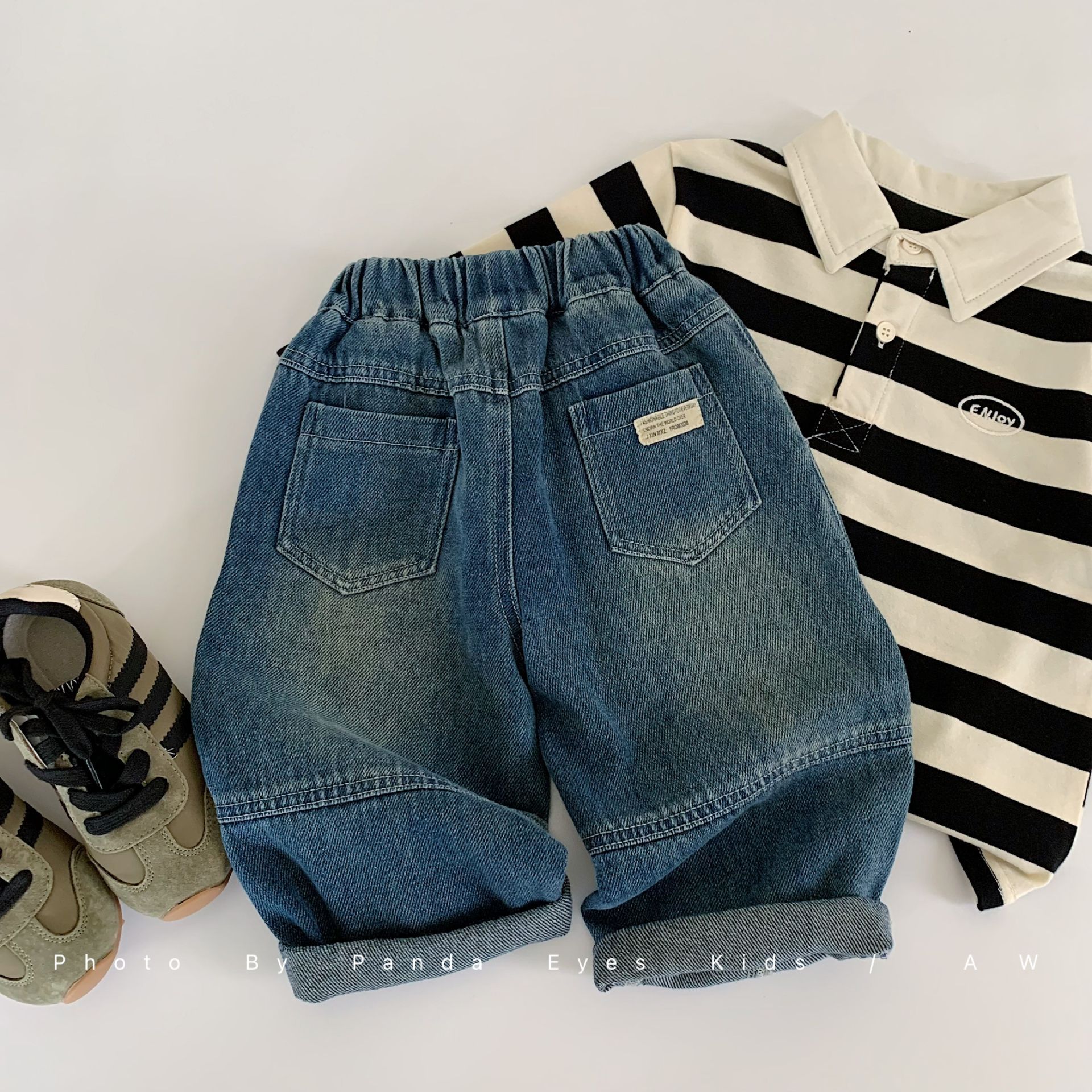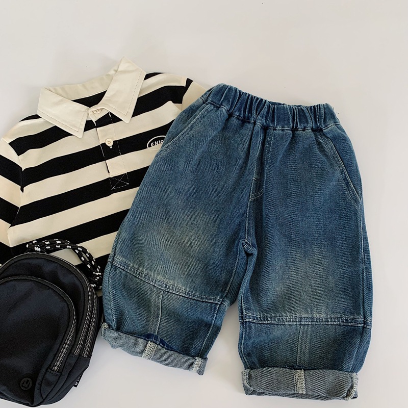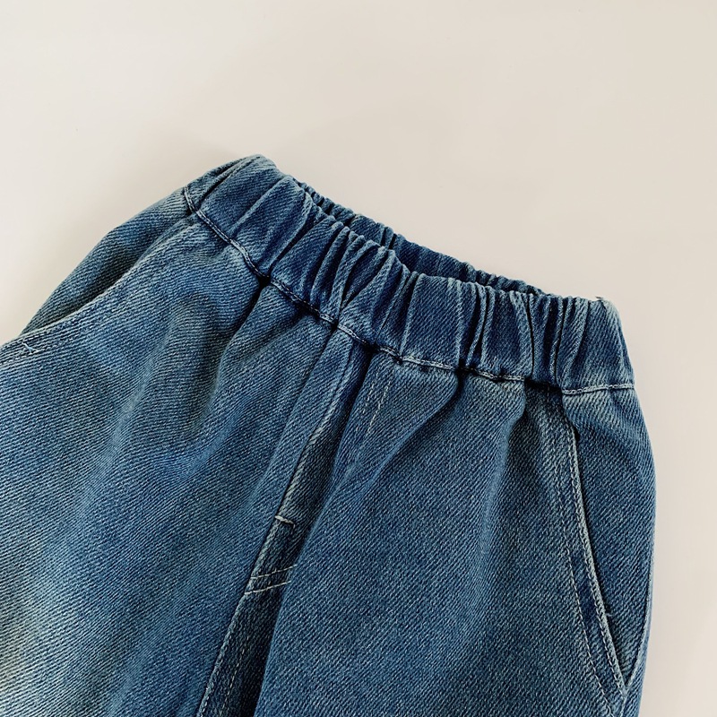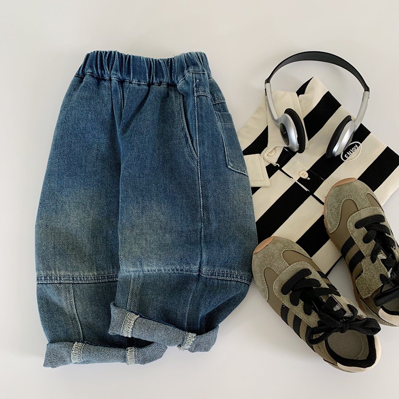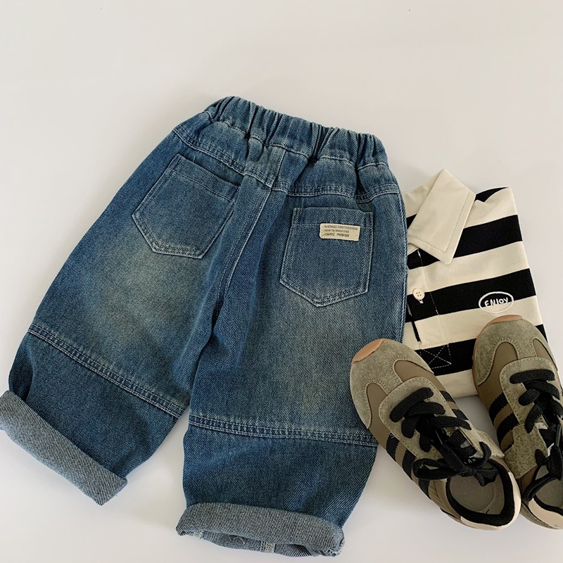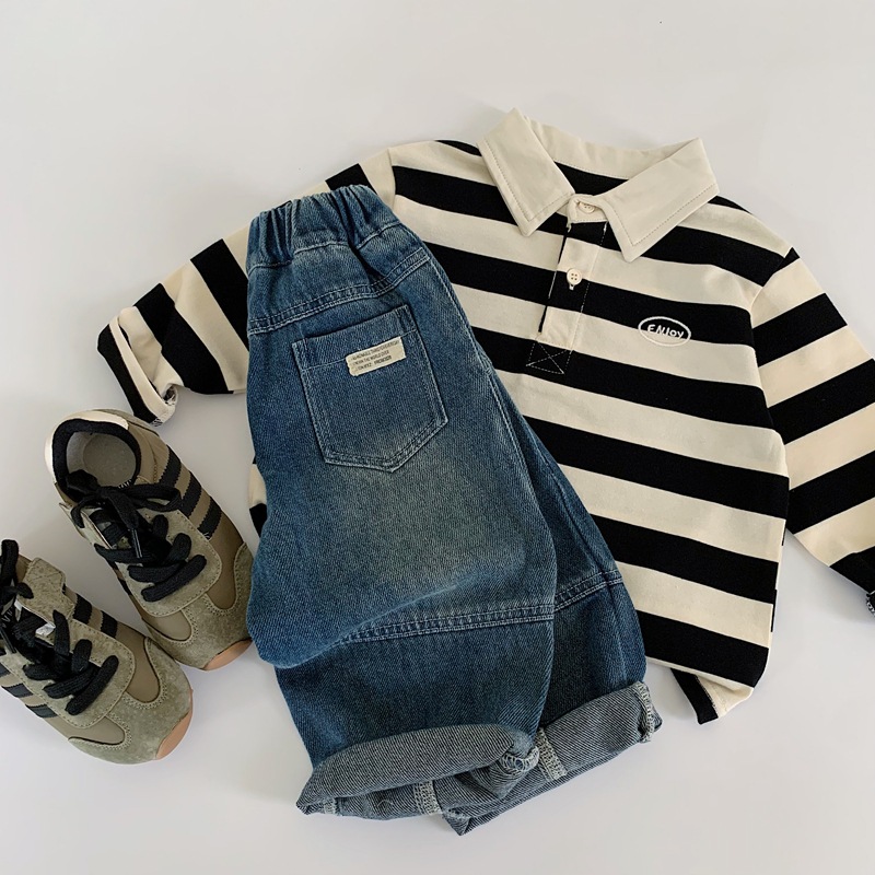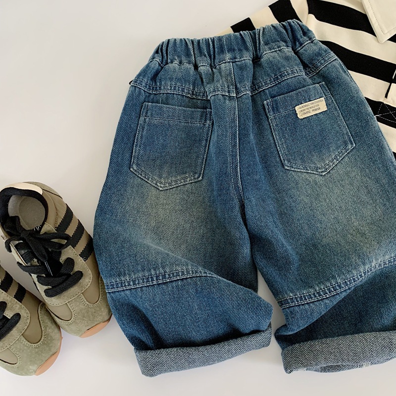 2025 가을 신작 일본과 한국 유행 아동 청바지 남성과 여성 베이비 라벨 캐주얼 바지 긴 바지 봄과 가을스토어 가기