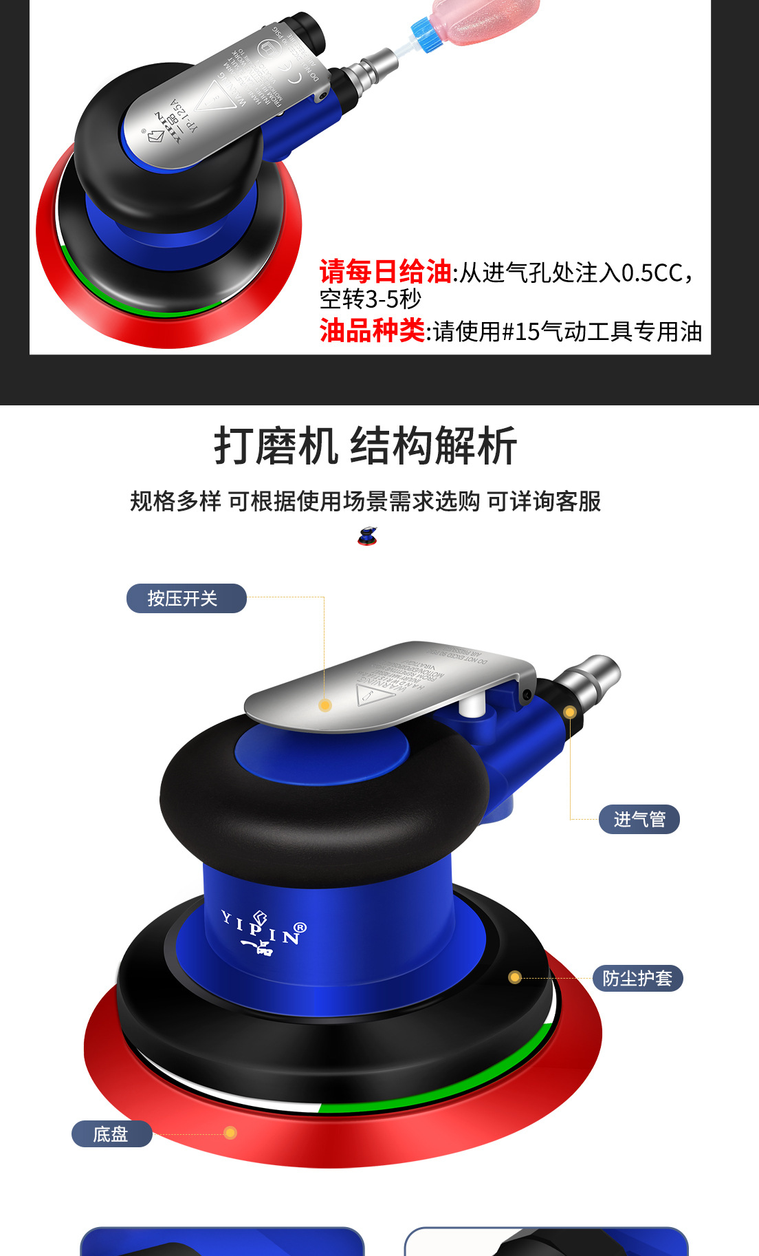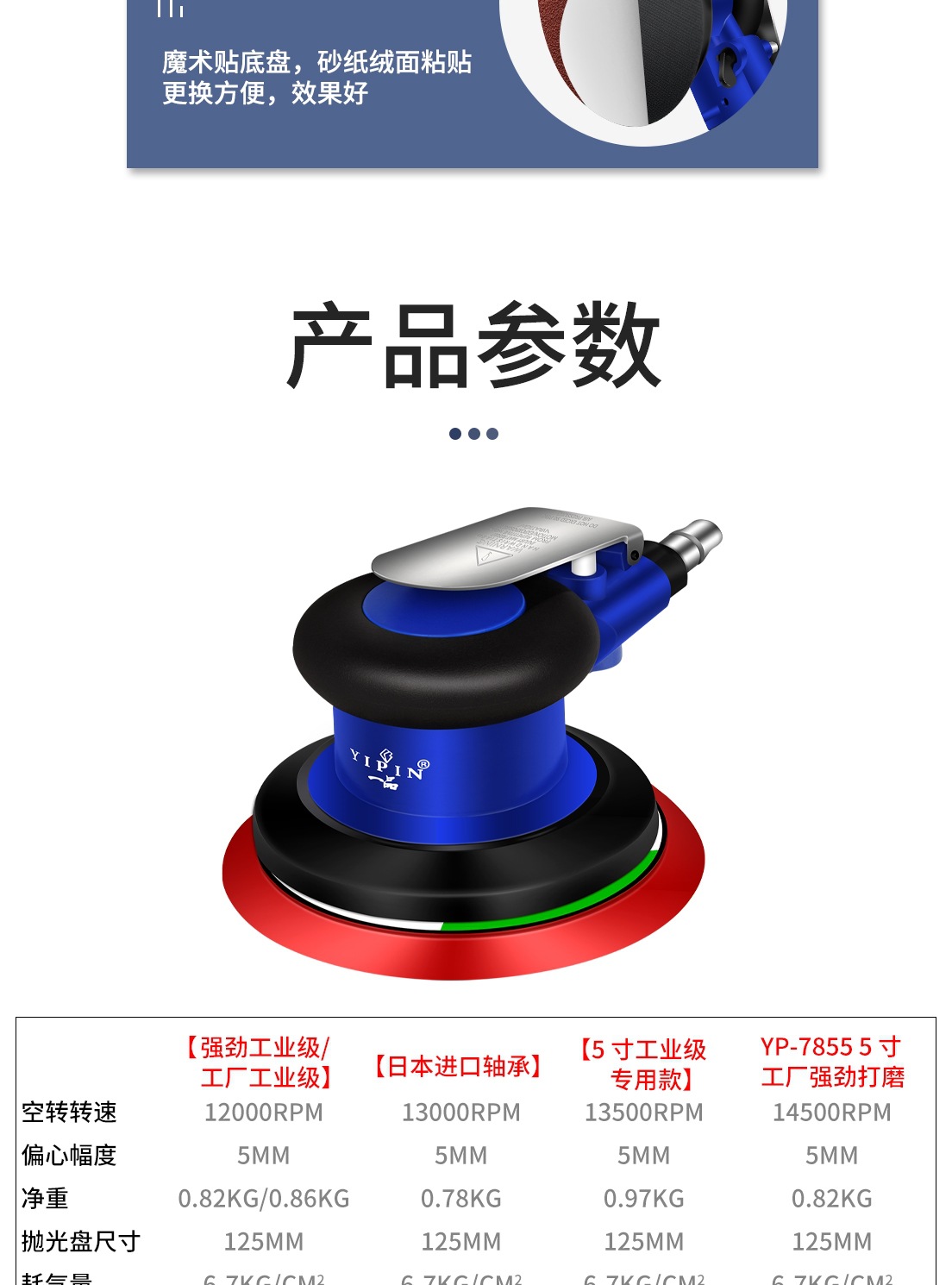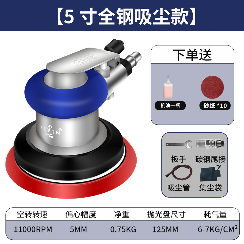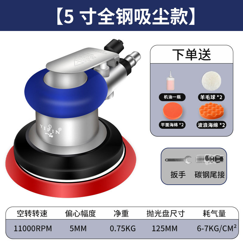 Yipin 대만 공압 그라인더 소형 5inch 폴리셔 산업용 등급 디스크 샌딩 페이퍼 샌딩 왁싱 그라인더스토어 가기