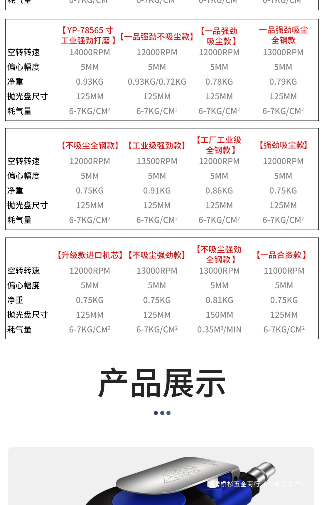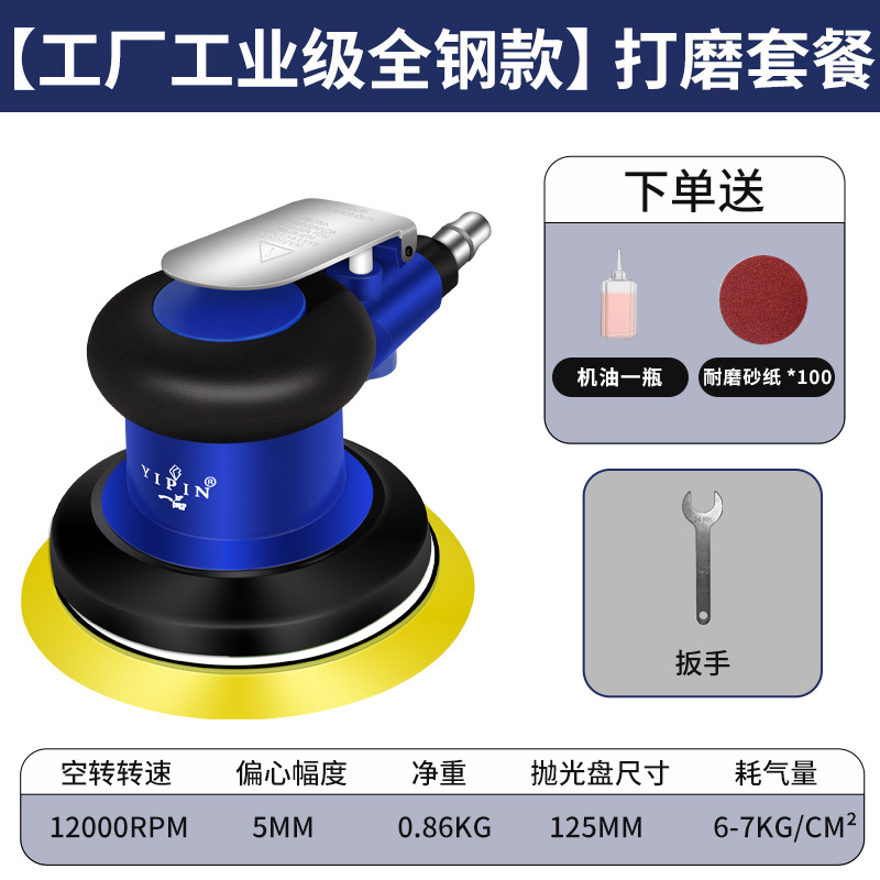• [공장 산업 등급] (올 스틸 모델) 5inch +10 내마모성 사포 (유지 보수 오일 무료) [샌딩 할인 패키지] - 파란색과 노란색