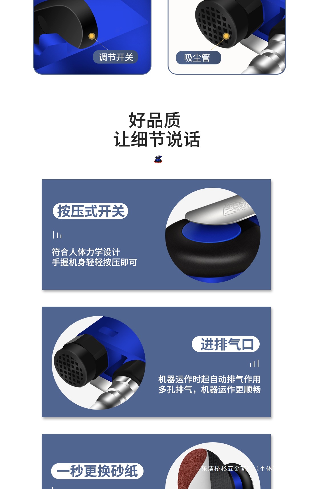 • 5inch 진공청소기가 아닌 모든 강철 + 사포 20개(유지보수 오일 포함) - 파란색 및 검정색