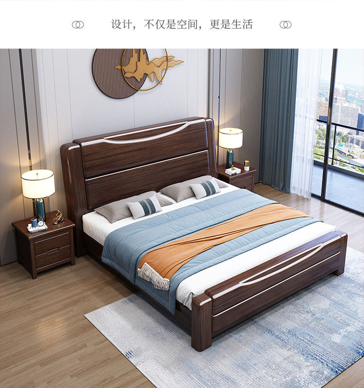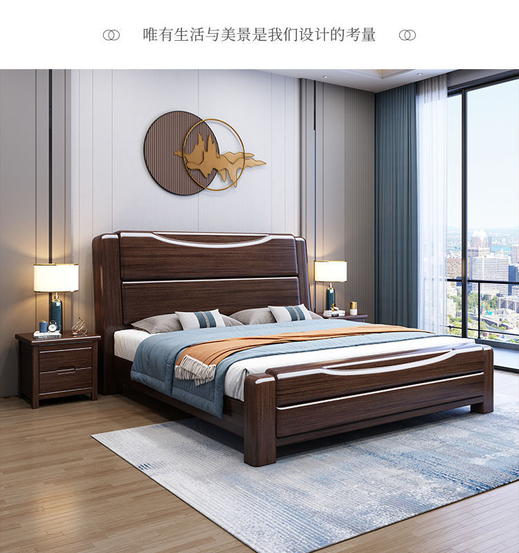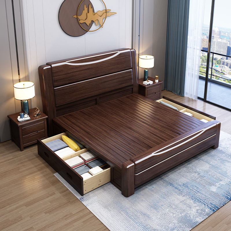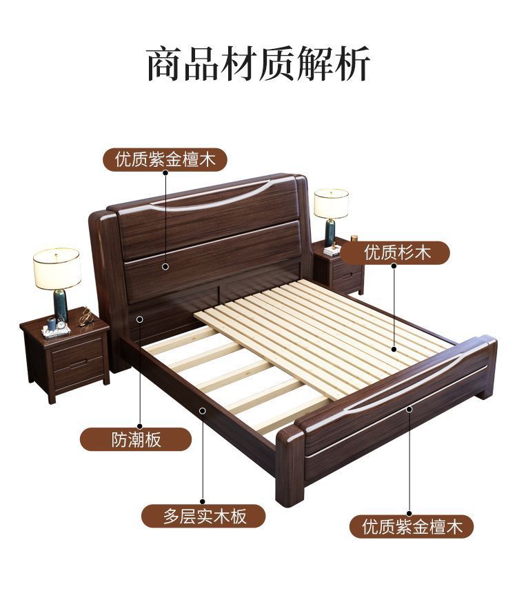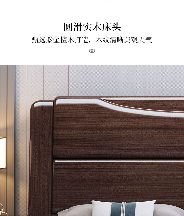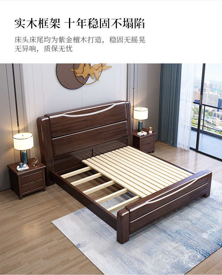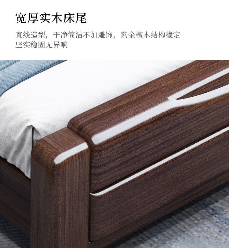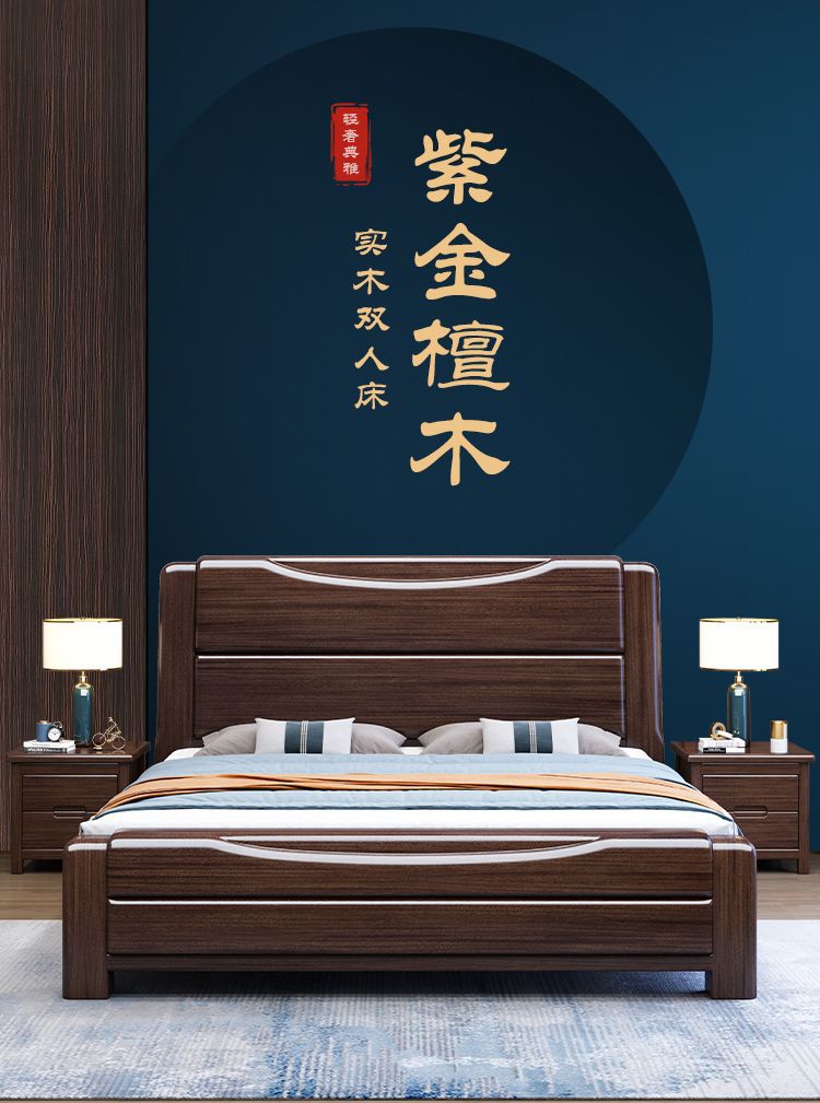 보라색 금 백단 단단한 나무 침대 더블 1.8x 2m 수납 침대 1.5m 홈 현대적인 미니멀리스트 마스터 침실 대형 침대
