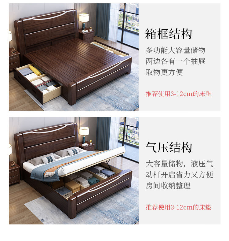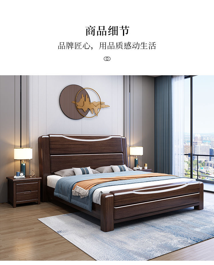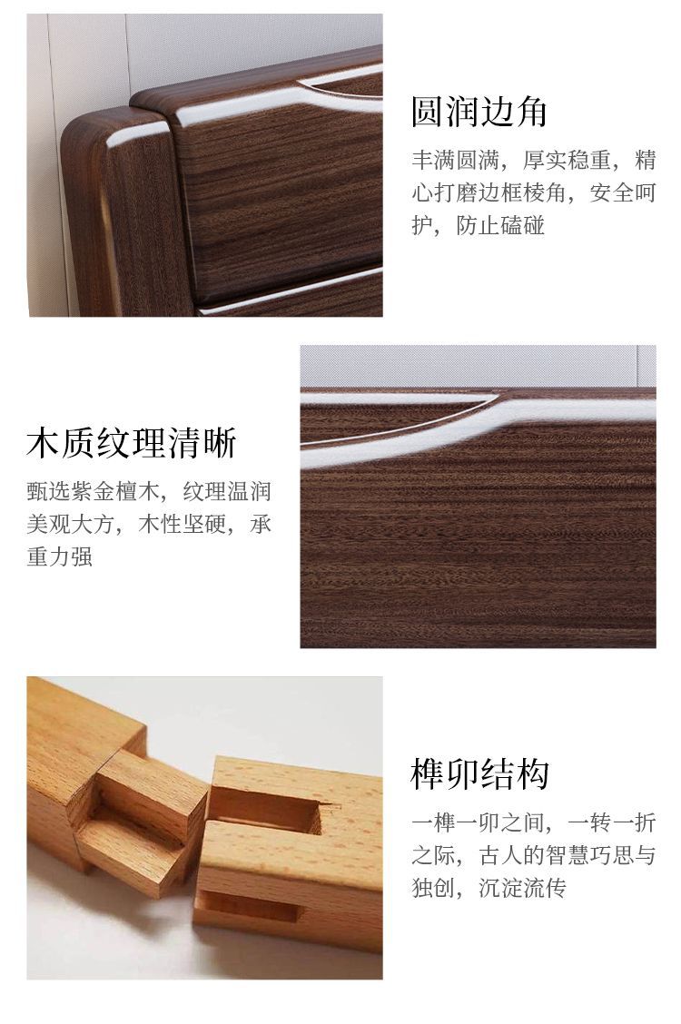 보라색 금 백단 단단한 나무 침대 더블 1.8x 2m 수납 침대 1.5m 홈 현대적인 미니멀리스트 마스터 침실 대형 침대스토어 가기