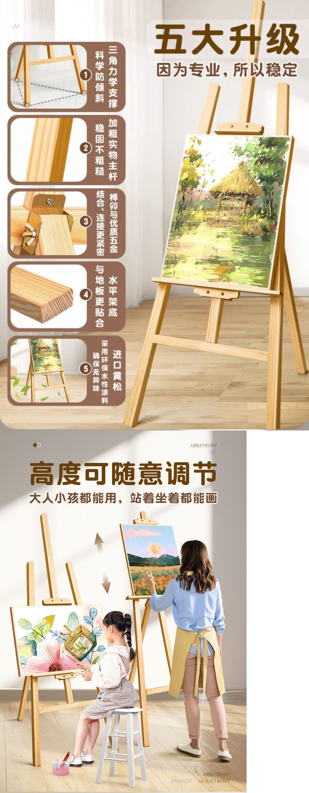 • 1.75m 노란색 소나무 이젤 + 무료 드라이버