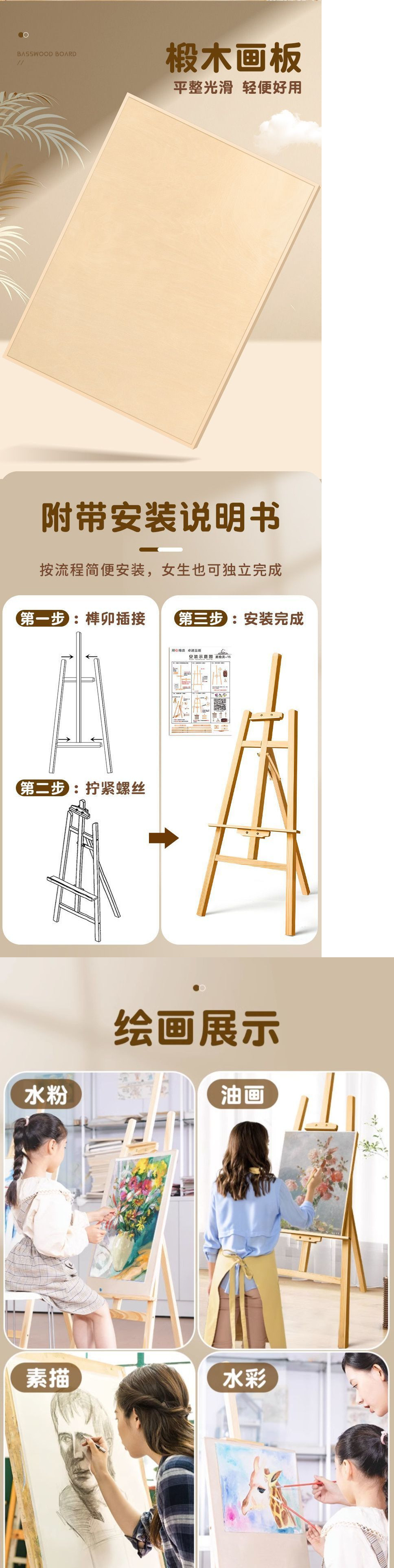 • 1.5m 이젤 + 8K 솔리드 화판 + 종이 20장/무료 클립 4개
