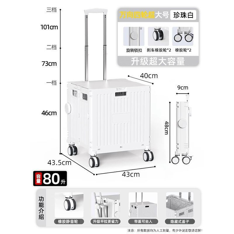 • 두꺼운 [55L] 4륜 - 흰색 - 브레이크가 있는 저소음 고무 범용 휠