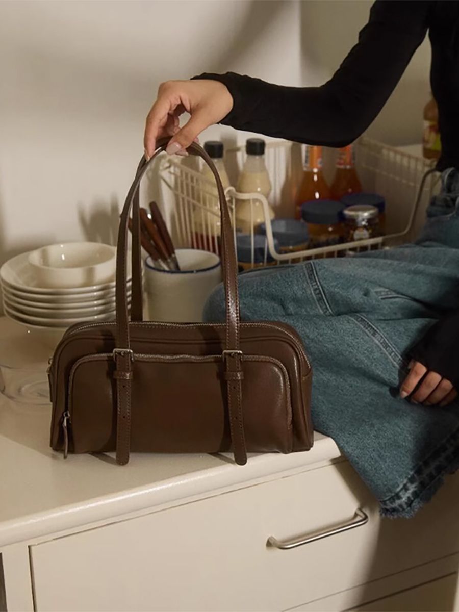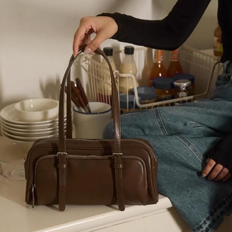 고급 보스턴 볼링 가방 대용량 2025 새로운 프랑스 복고풍 휴대용 어깨 겨드랑이 통근스토어 가기