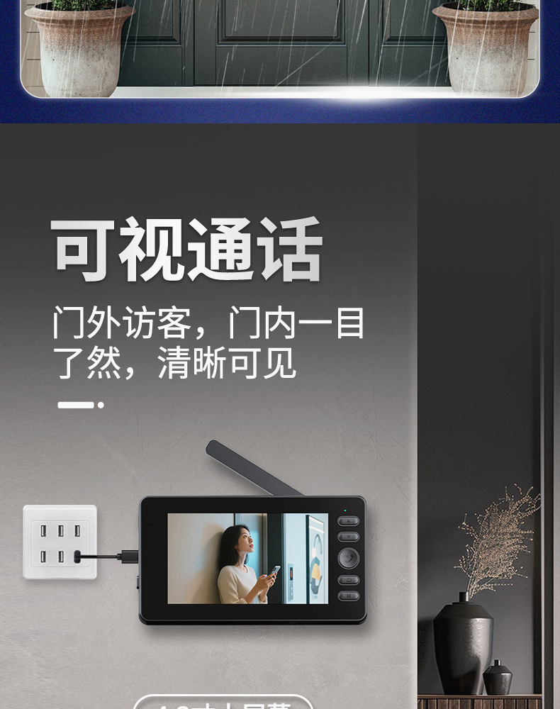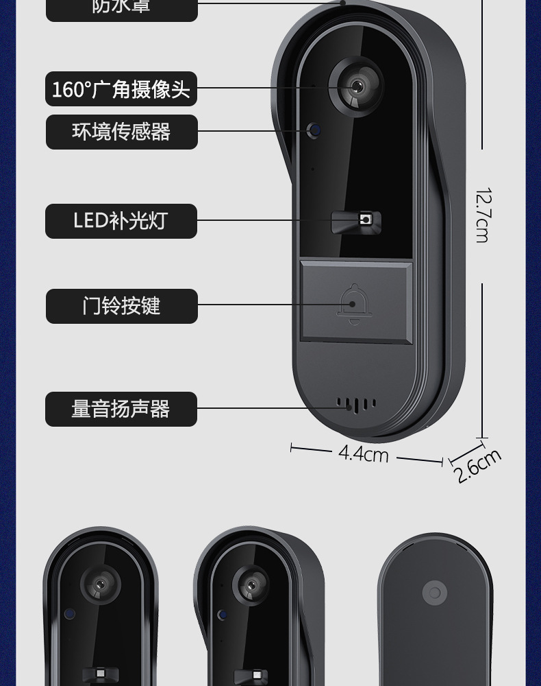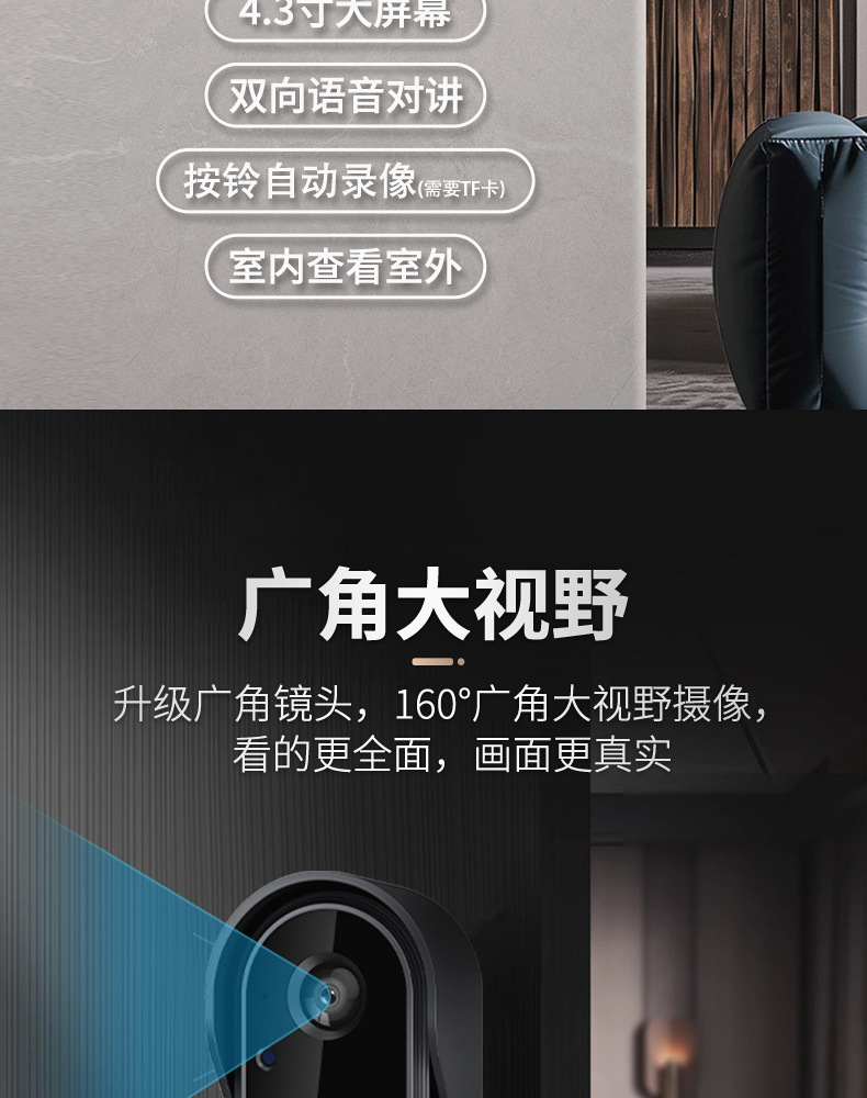 스마트 비디오 초인종 능동식 웨이크업 HD 광각 능동형 보기 스크린이 있는 실외 방수 비디오 통화스토어 가기