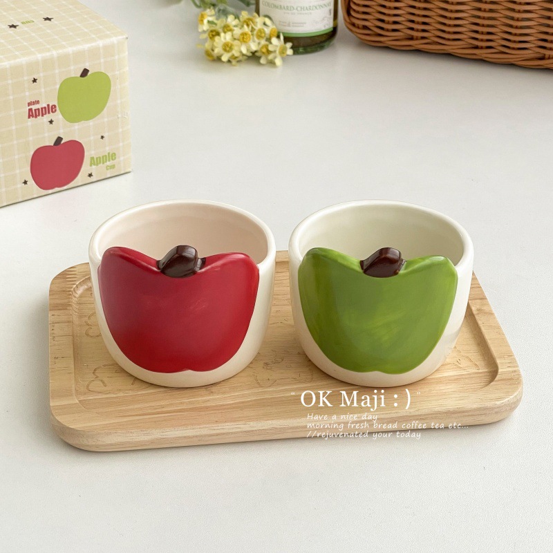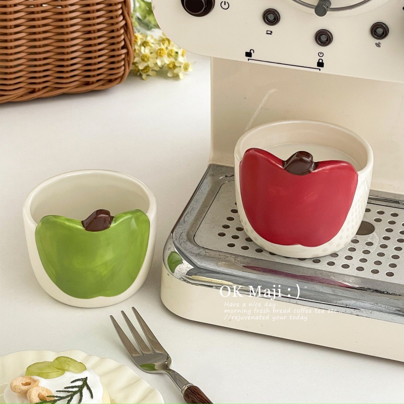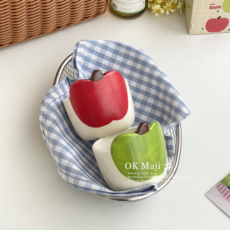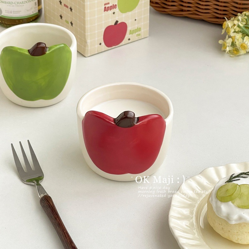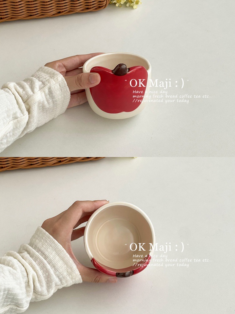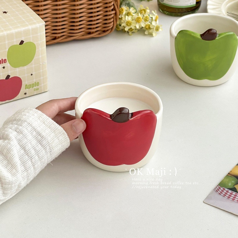 아침 머그, 창의적이고 멋진 머그, 귀여운 사과 머그, 어린이용 세라믹 머그, 유약 컬러 커플 커피 머그스토어 가기