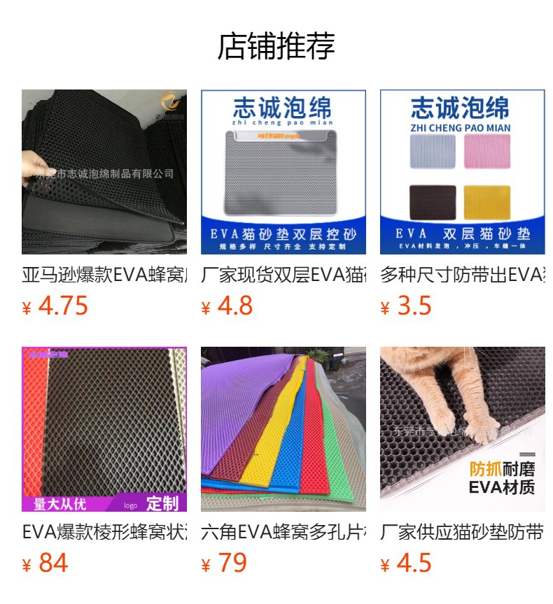 현물 국경 간 EVA 이중층 고양이 모래 매트, 휴대 방지 모래 제어 매트, 세척 가능한 EVA 고양이 모래 매트, 벌집 구멍 모래 누출 매트스토어 가기