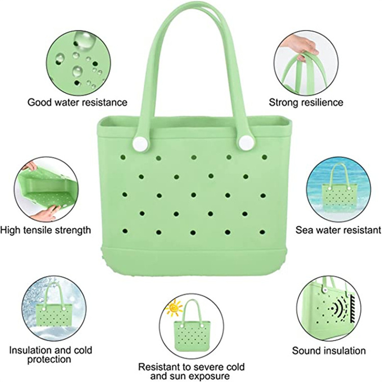 2025 맞춤형 유럽과 미국의 패션 야외 인쇄 EVA 비치 가방 휴대용 저장 가방 구멍 가방 숙녀 어깨 가방