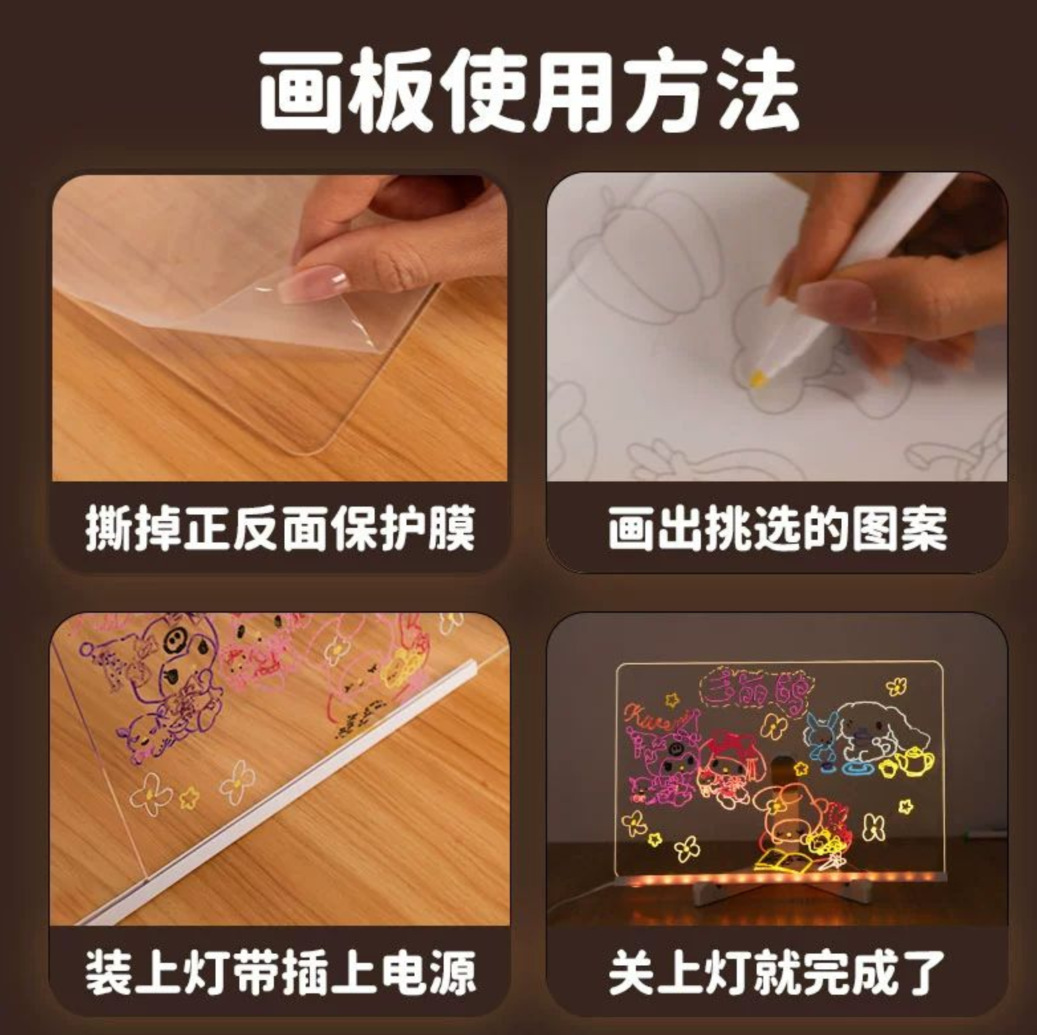크리 에이 티브 빛나는 장난감 빛나는 드로잉 보드 어린이 수제 diy 아크릴 드로잉 보드 지울 수있는 diy 장난감스토어 가기