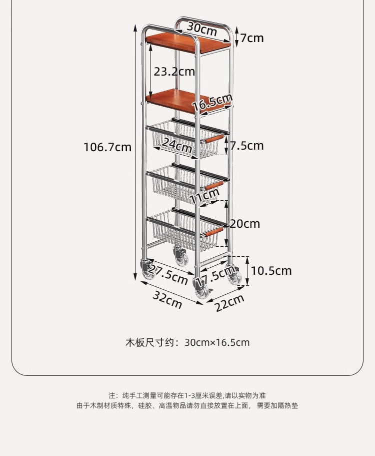 • 중세 2층 장바구니 카트 [304 스테인레스 스틸]