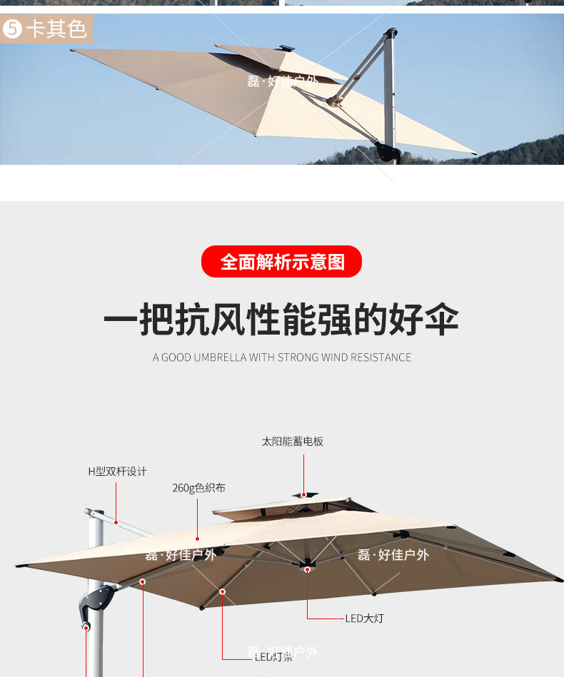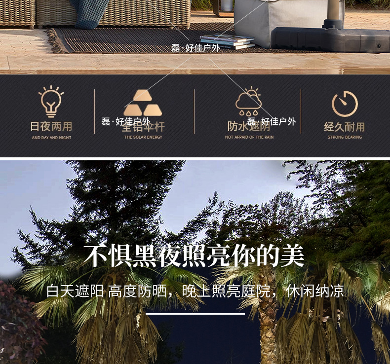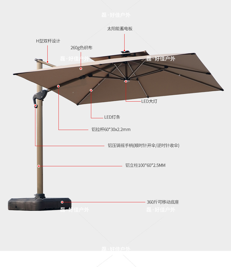 야외용 파라솔, 정원용 우산, 상업용 대형 우산, 정원용 태양광 조명 로마 우산, 방풍 기능, 제조업체 재고 있음스토어 가기