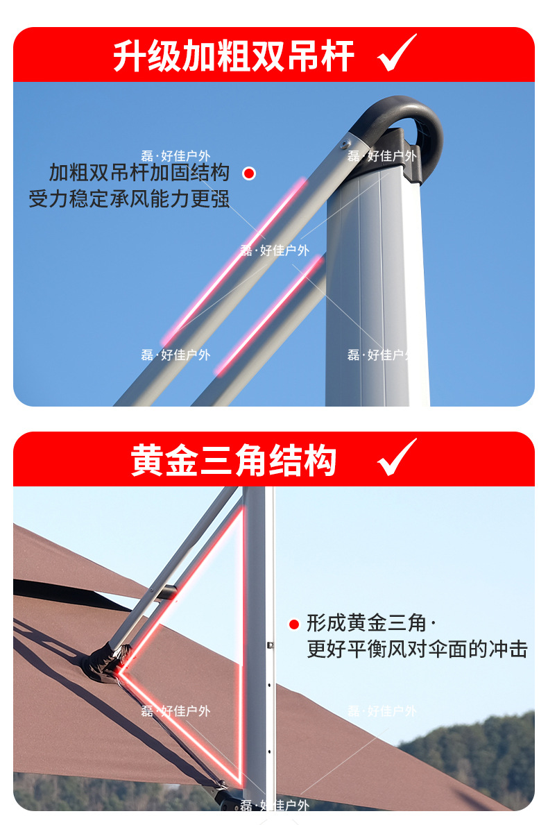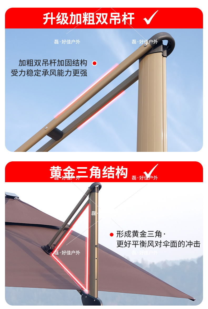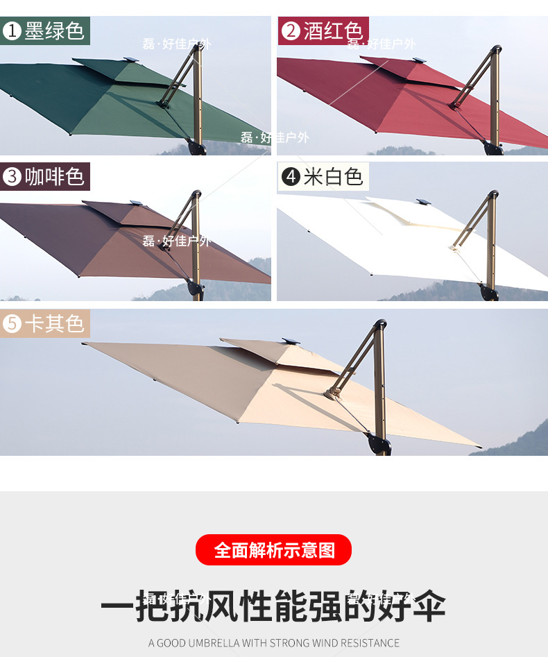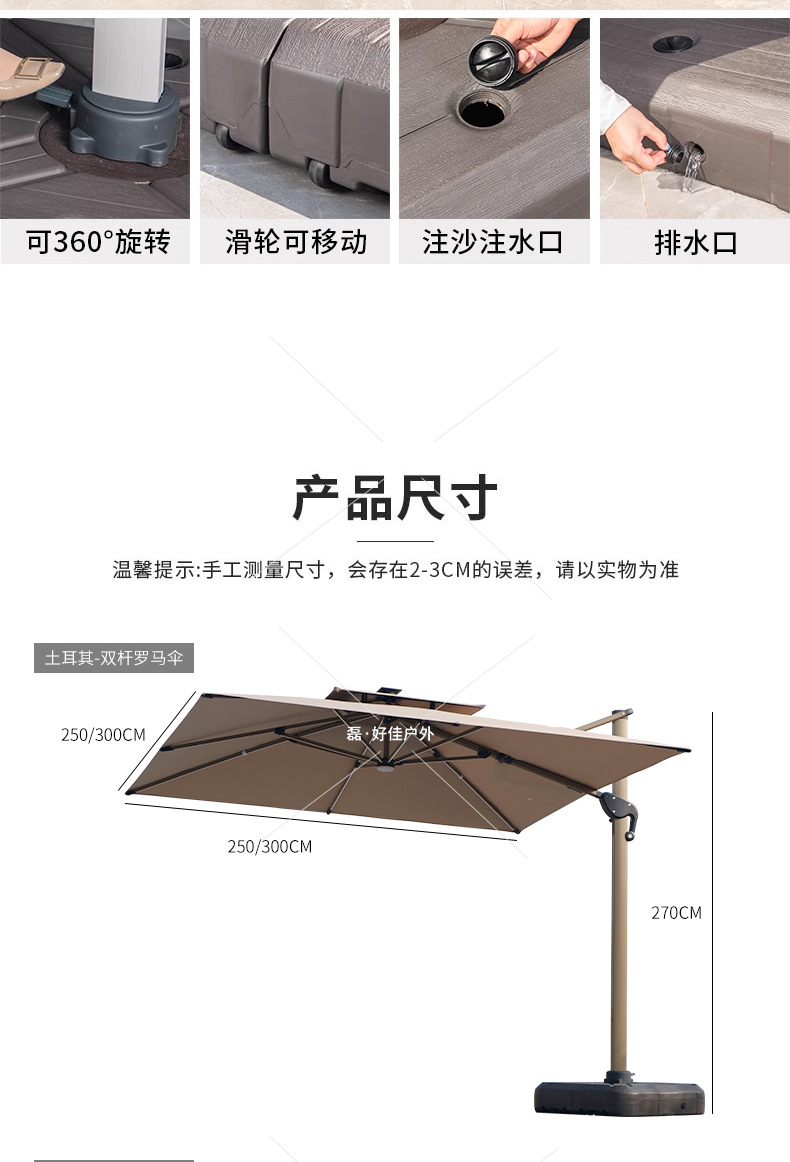 • 원형 2.7m 바나나 파라솔 (두꺼운 PU 원단) - 단일형 - 철제 (대리석 받침대 포함)