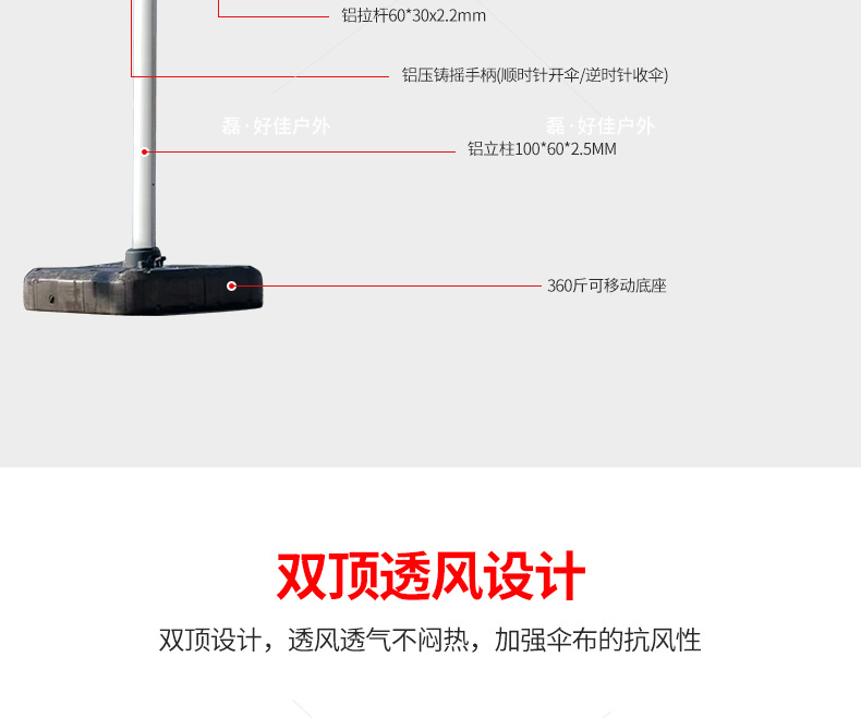 • 이중극(10cm기둥) ~2.5*2.5M 터키-버건디 [냉온등 이중절단](물탱크 베이스 180kg개 포함)