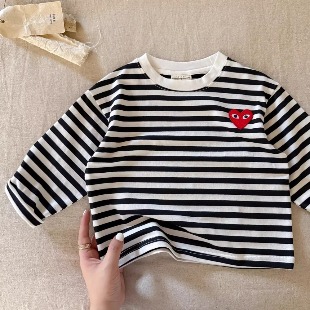 아동용 긴팔 티셔츠 2025 가을 신작 소년 일본 줄무늬 T 아기 어린이 스타일 순수 코튼 바닥 셔츠