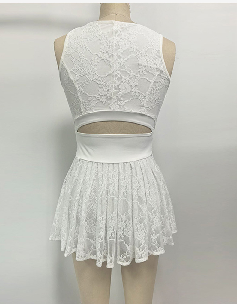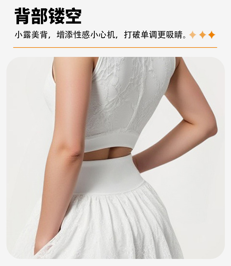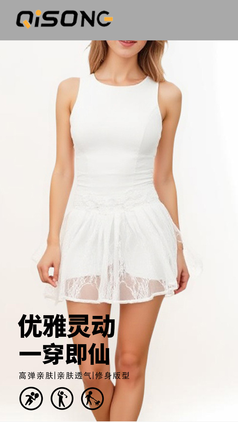 국경을 넘는 새로운 레이스 테니스 스커트, 우아하고 속건성 피트니스 댄스 드레스, 속이 빈 아름다운 등 스포츠 피트니스웨어 여성용
