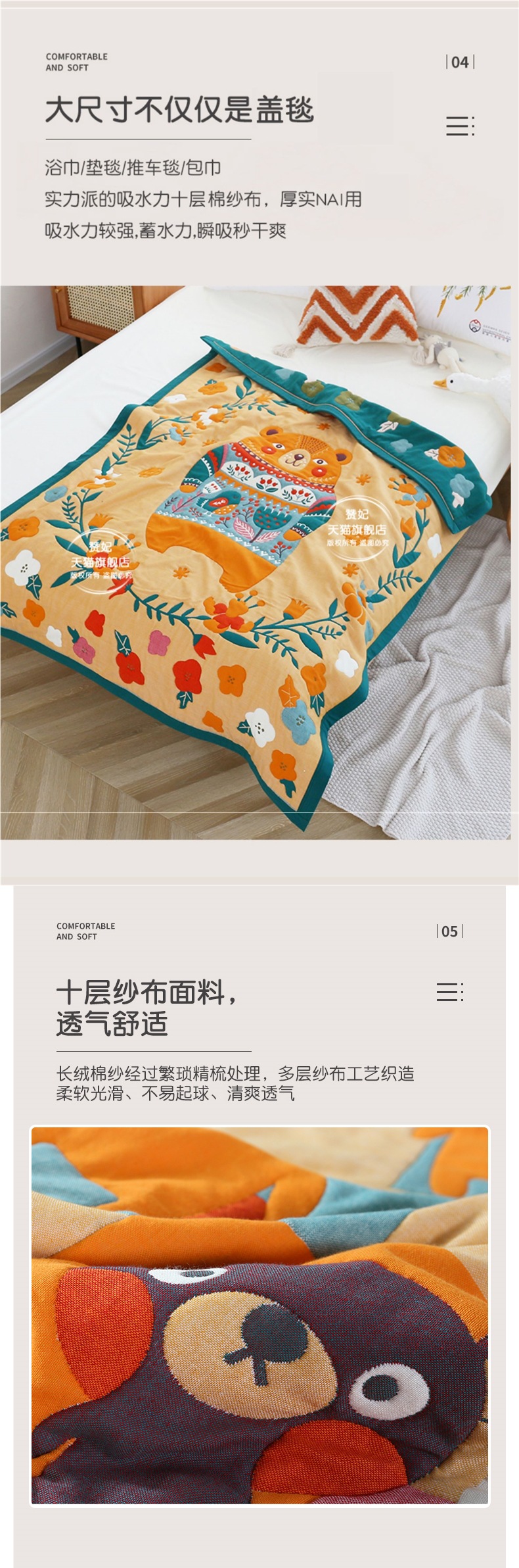 아기 담요 10겹 순면 거즈 어린이 담요 두꺼운 슈퍼 부드러운 신생아 수건 아기 유치원스토어 가기