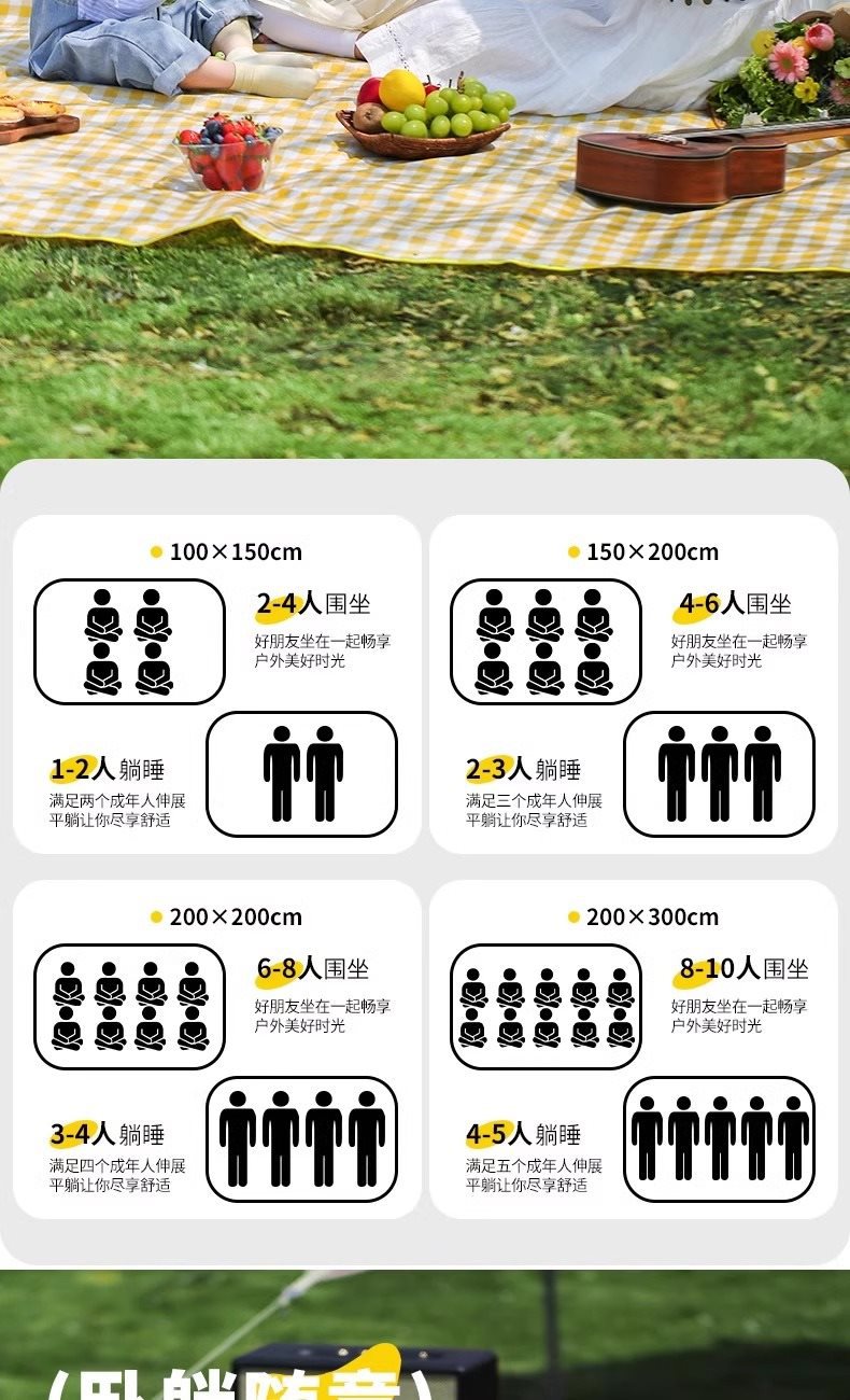 • 두꺼운 노란색 격자 150*200cm [양면 방수 및 무취] 6명이 앉을 수 있습니다.