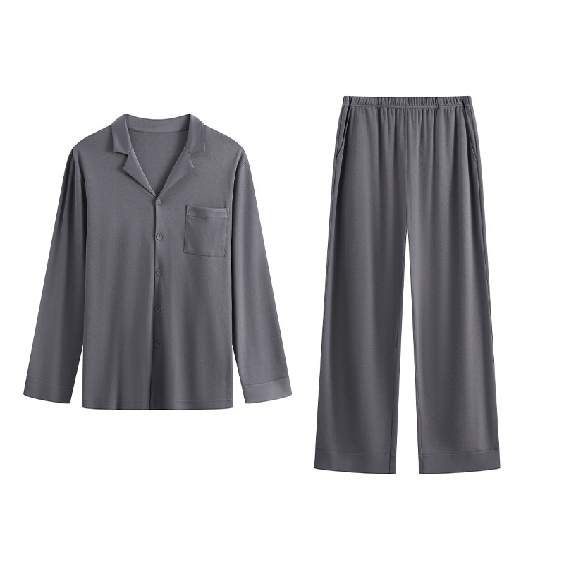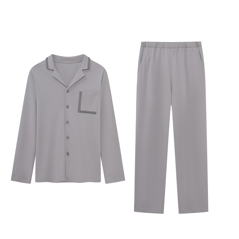 남성용 봄, 가을, 겨울 긴팔 긴바지 모달 코튼 앞뒤 단추 카라 홈웨어 얇은 잠옷 세트