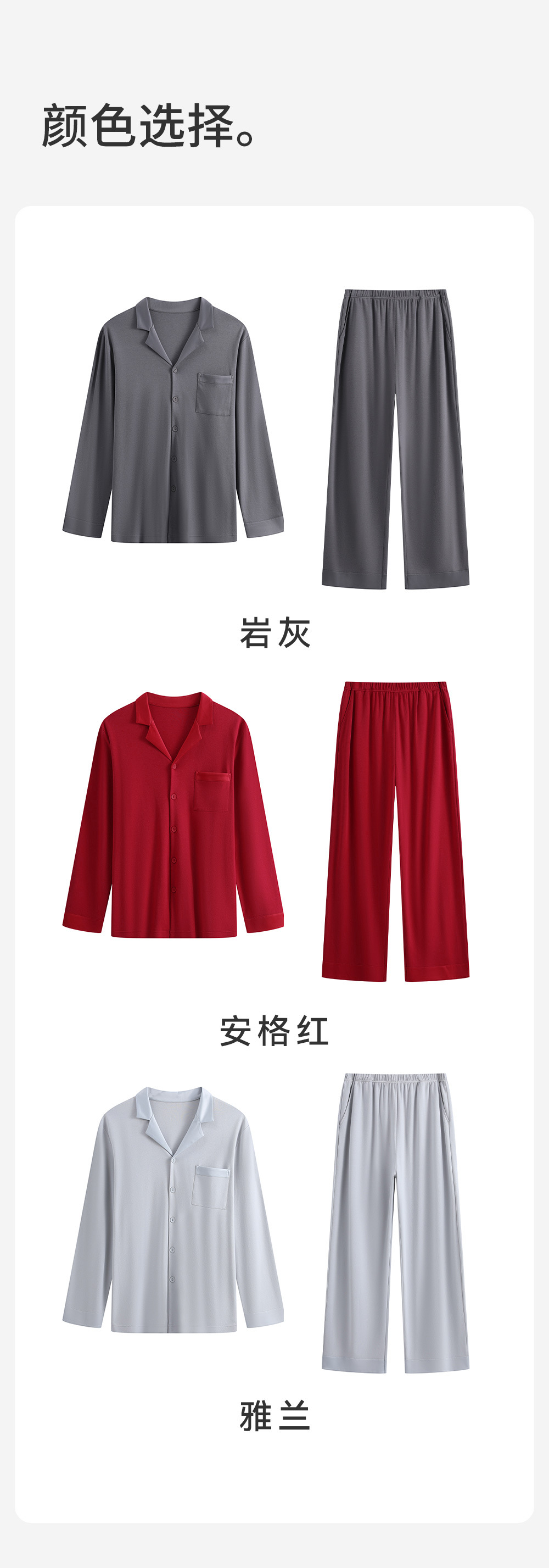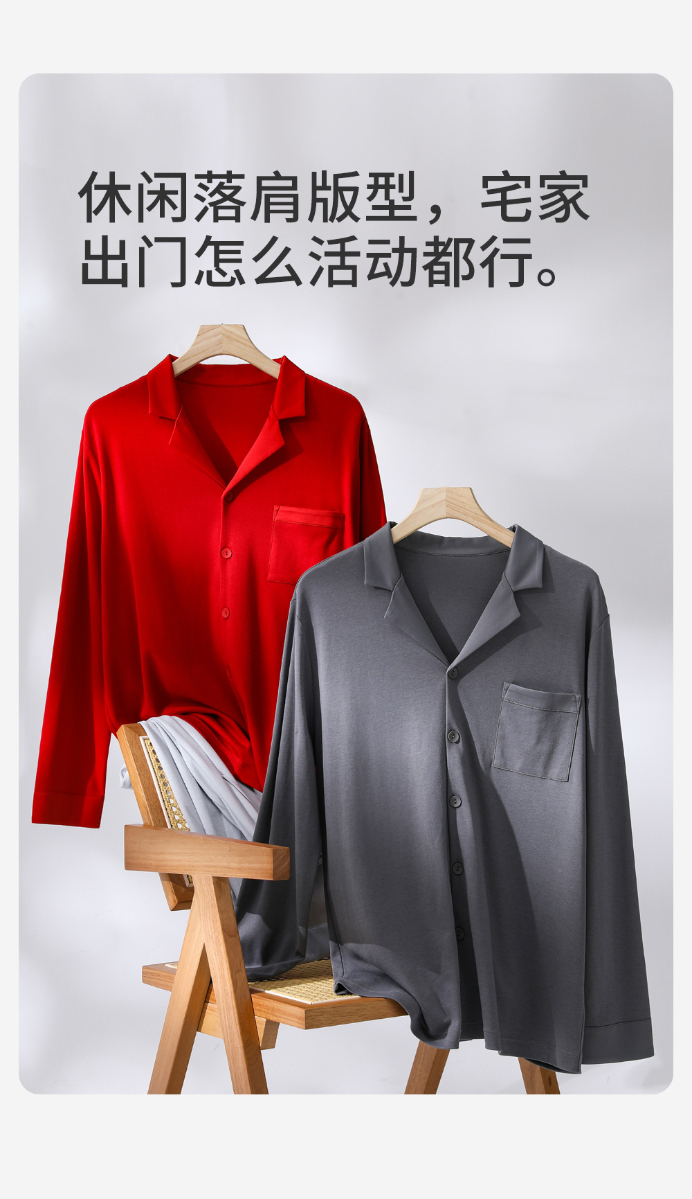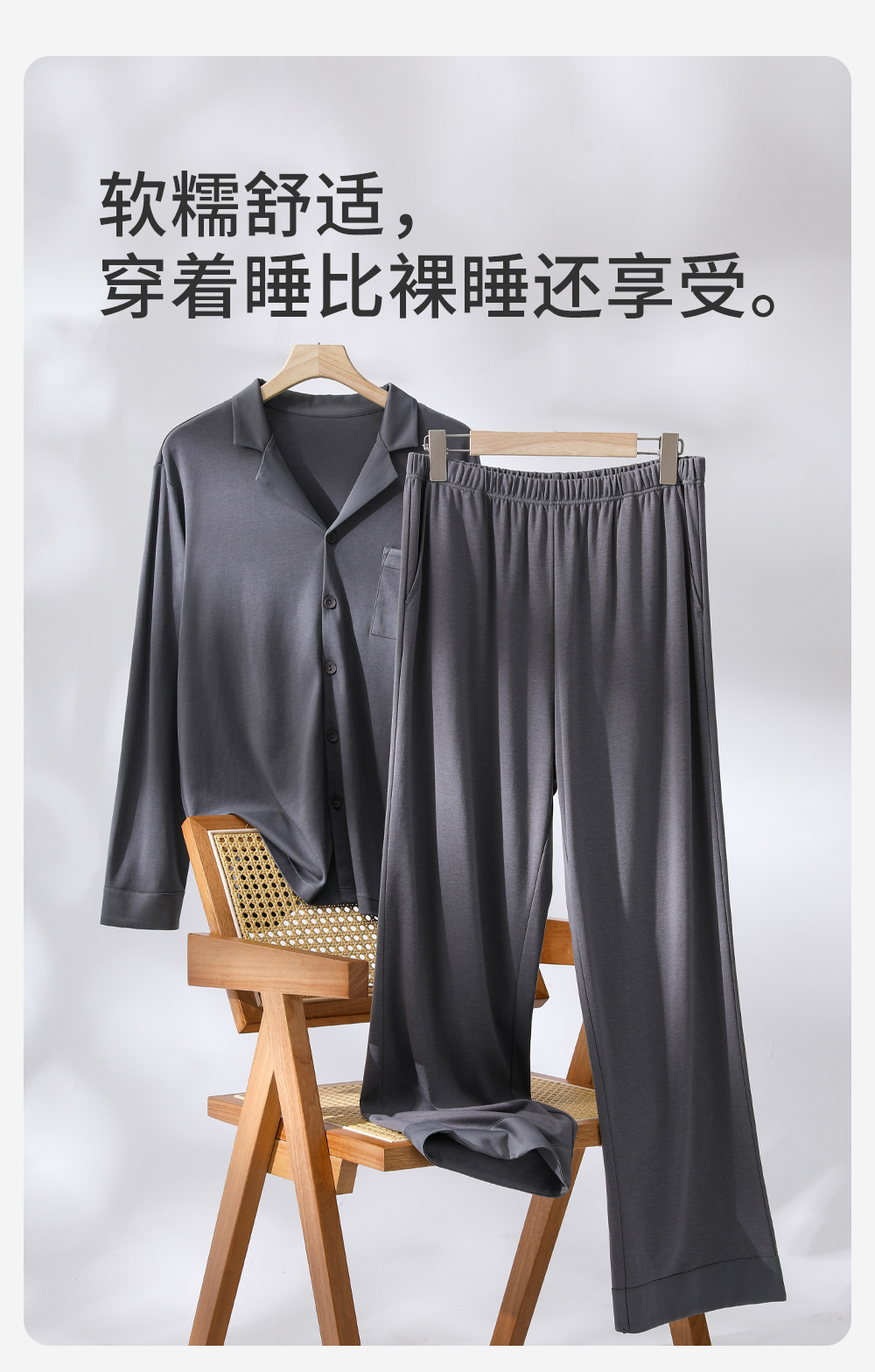 남성용 봄, 가을, 겨울 긴팔 긴바지 모달 코튼 앞뒤 단추 카라 홈웨어 얇은 잠옷 세트스토어 가기