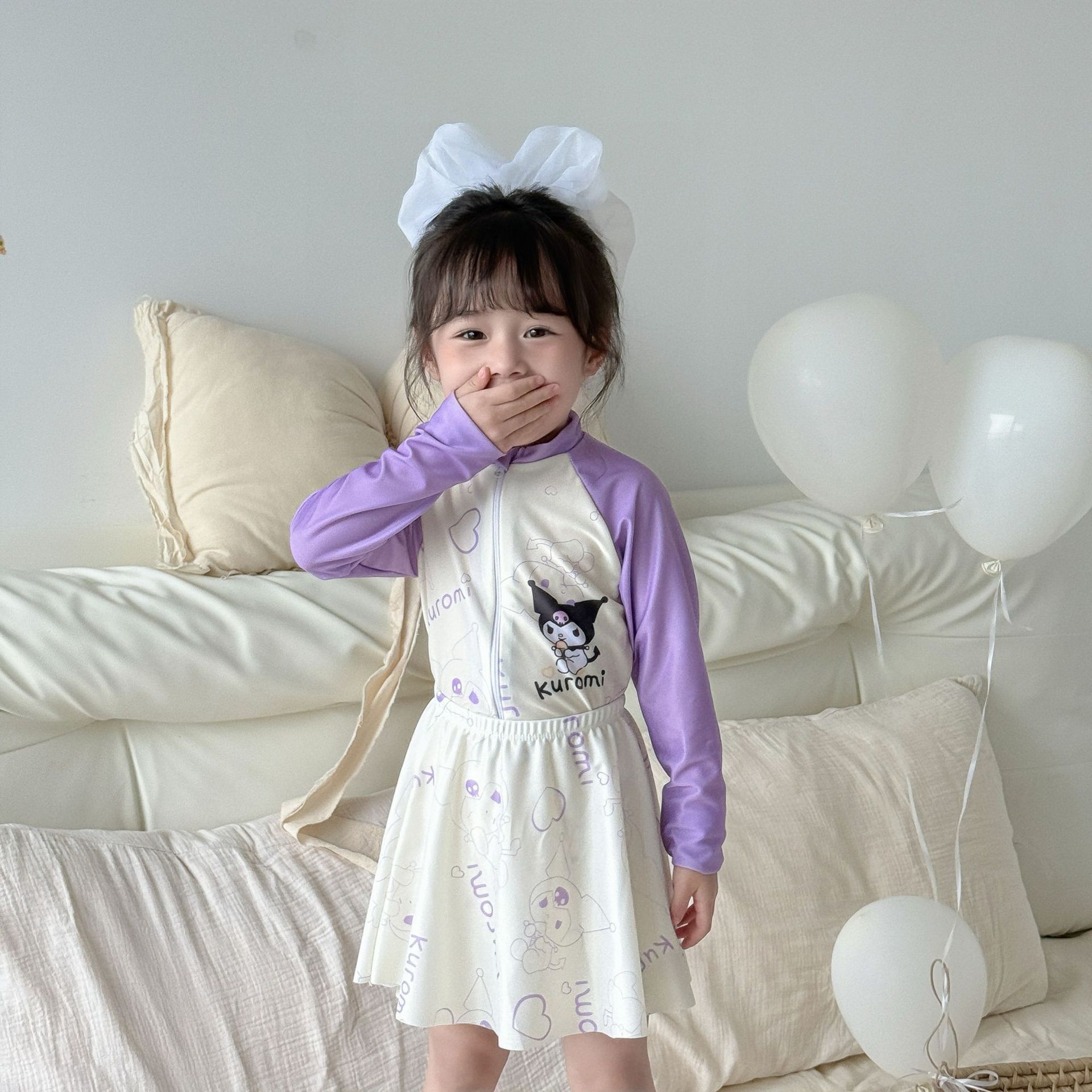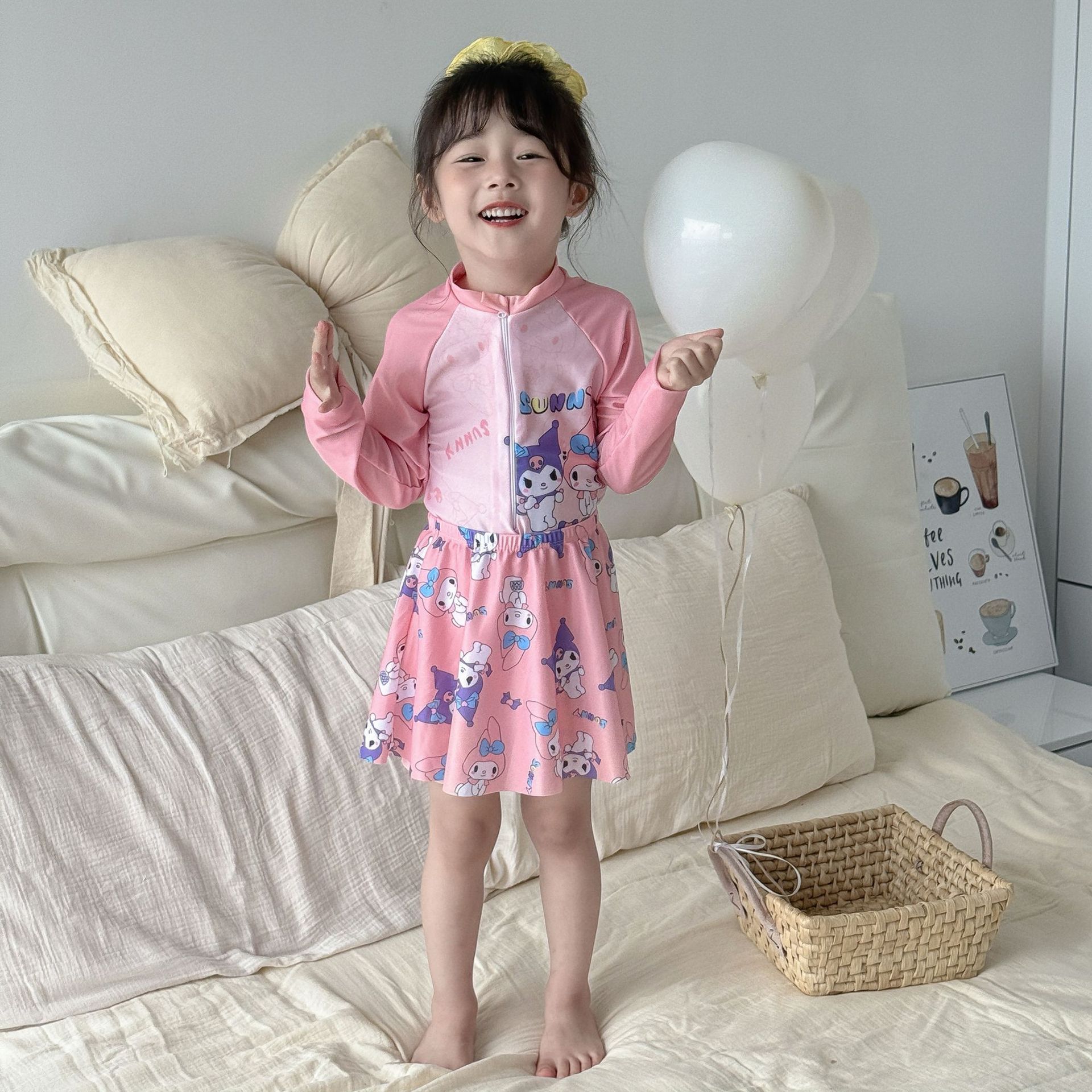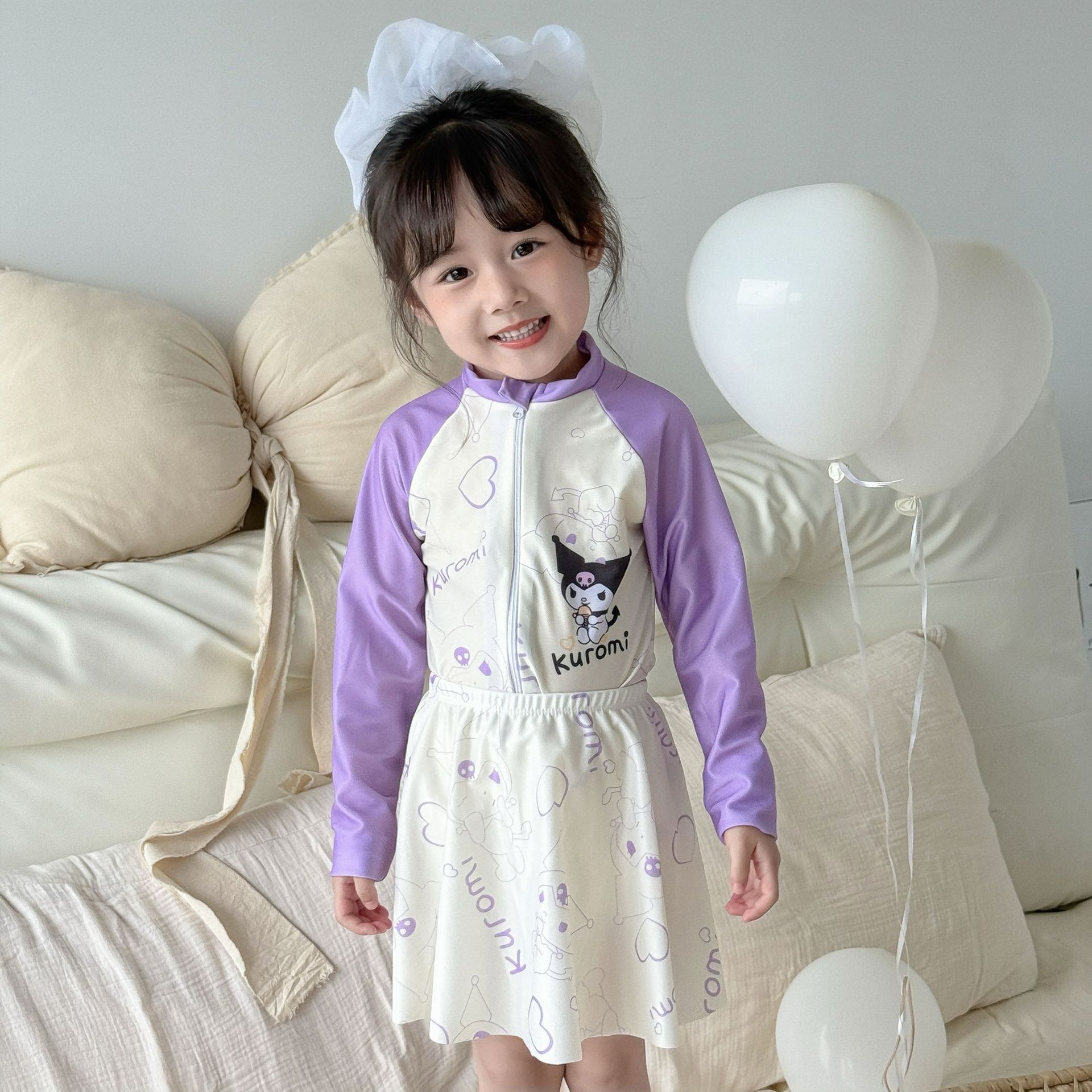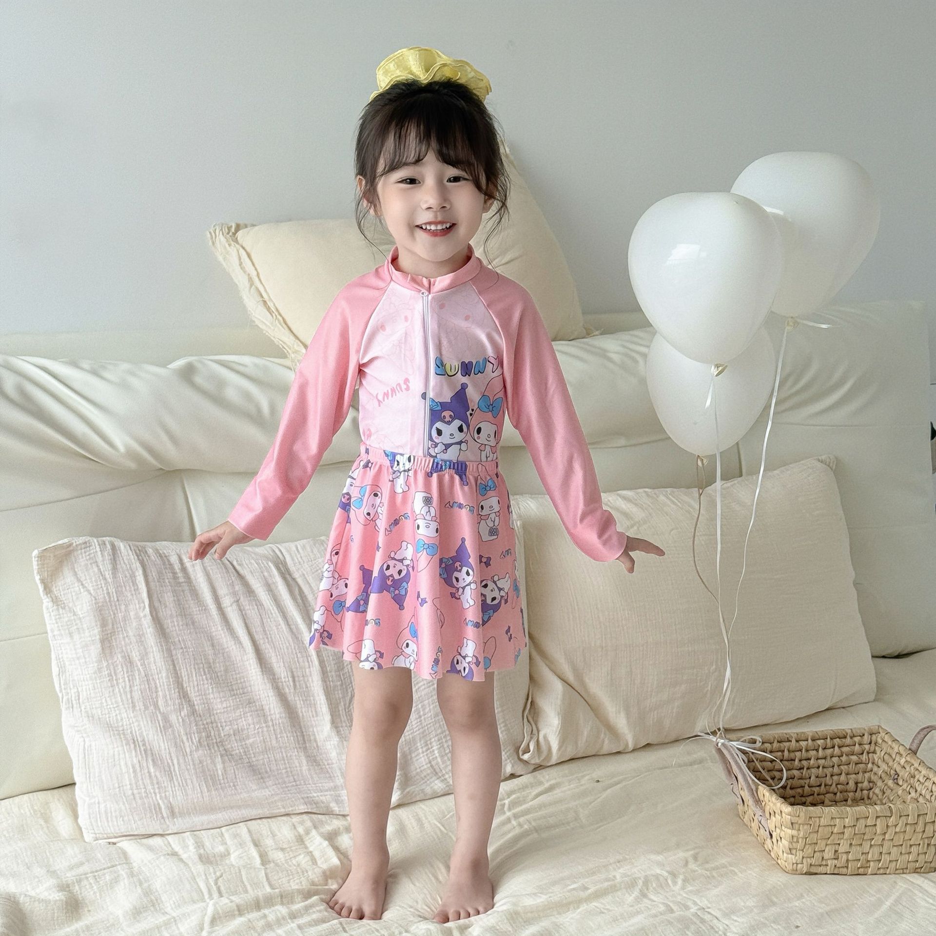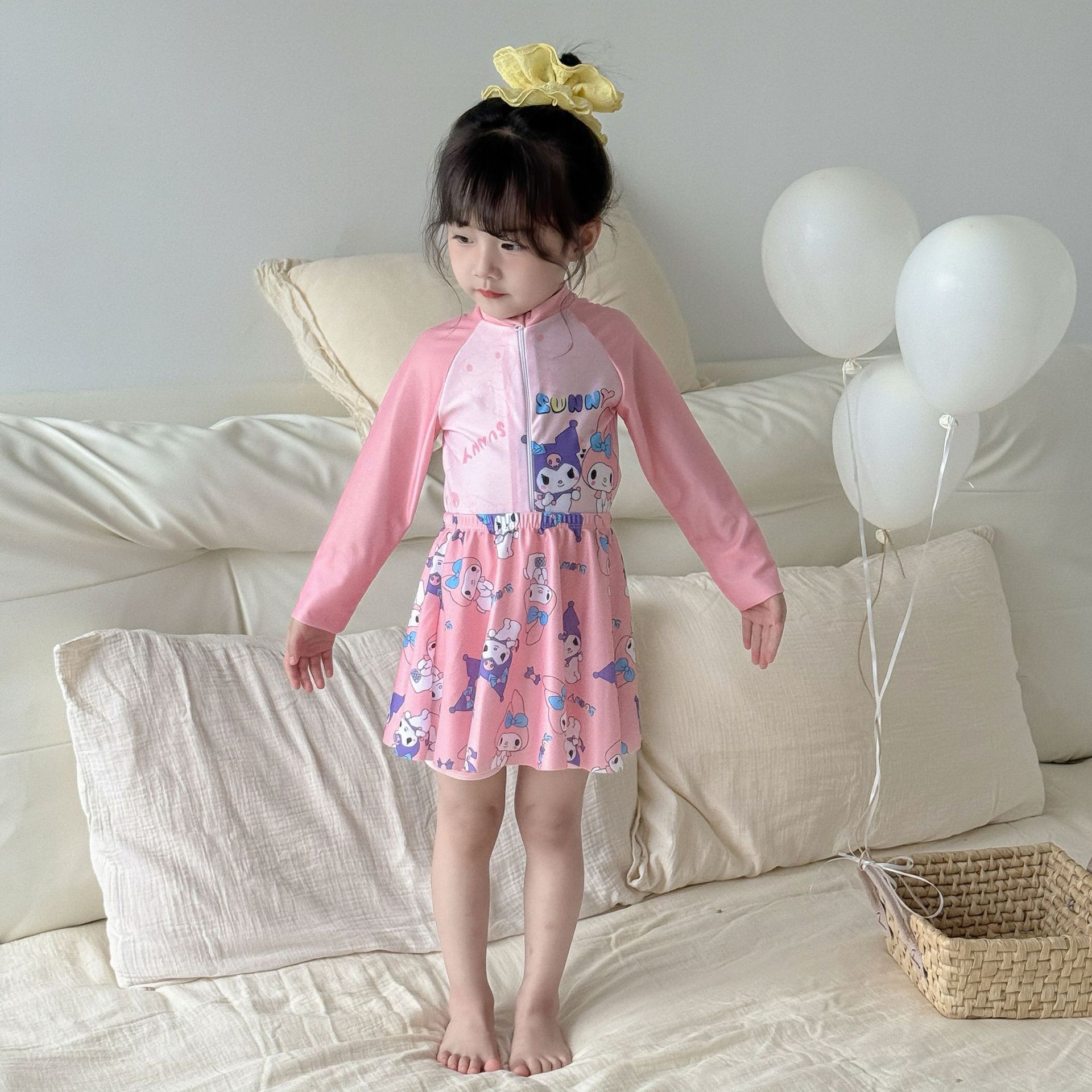 어린이 수영복 여아용 새로운 투피스 긴팔 자외선 차단 원피스 귀엽고 단정한 여아용 스커트형 수영복스토어 가기