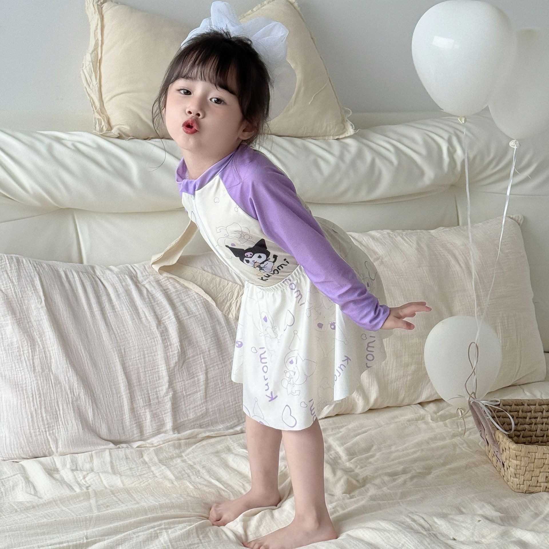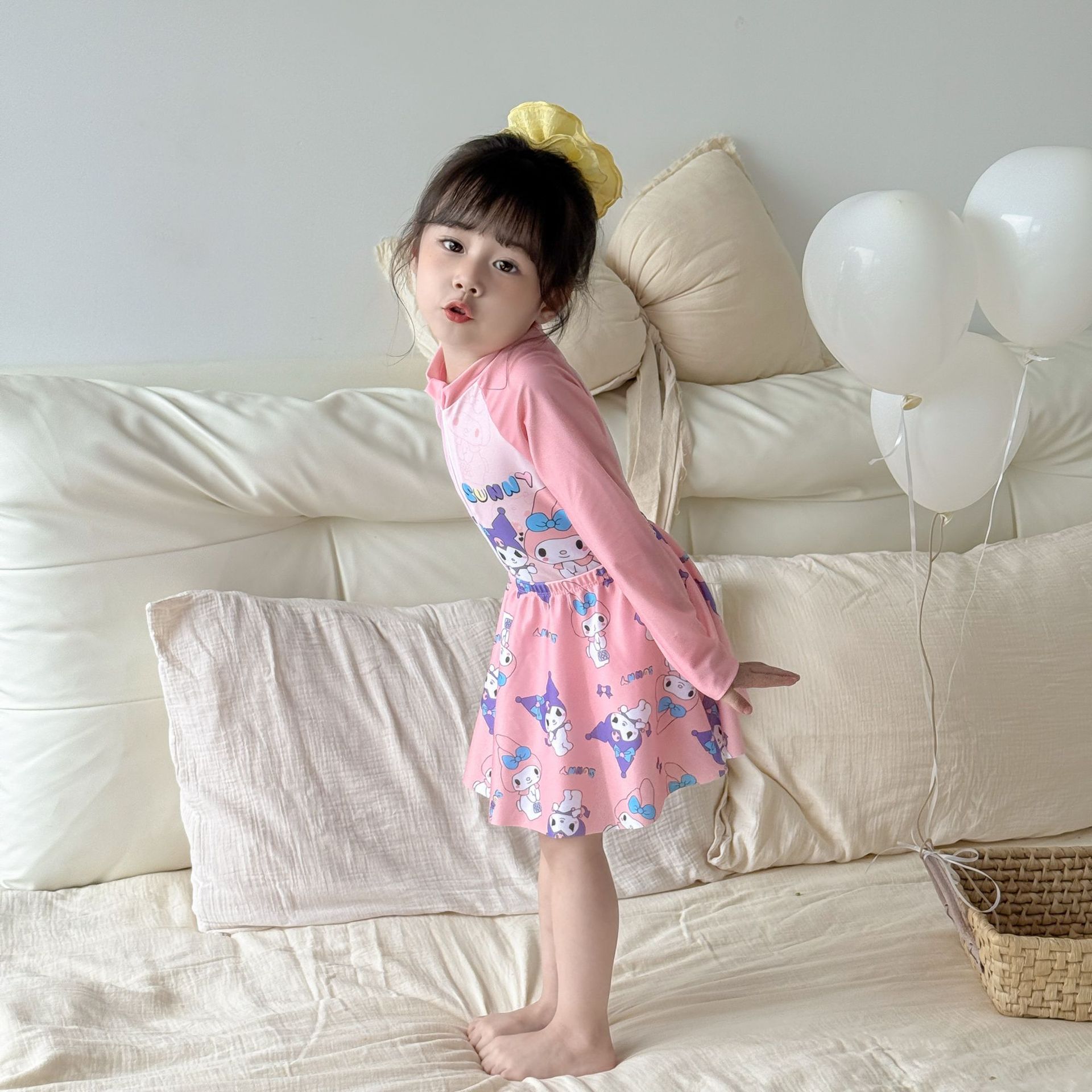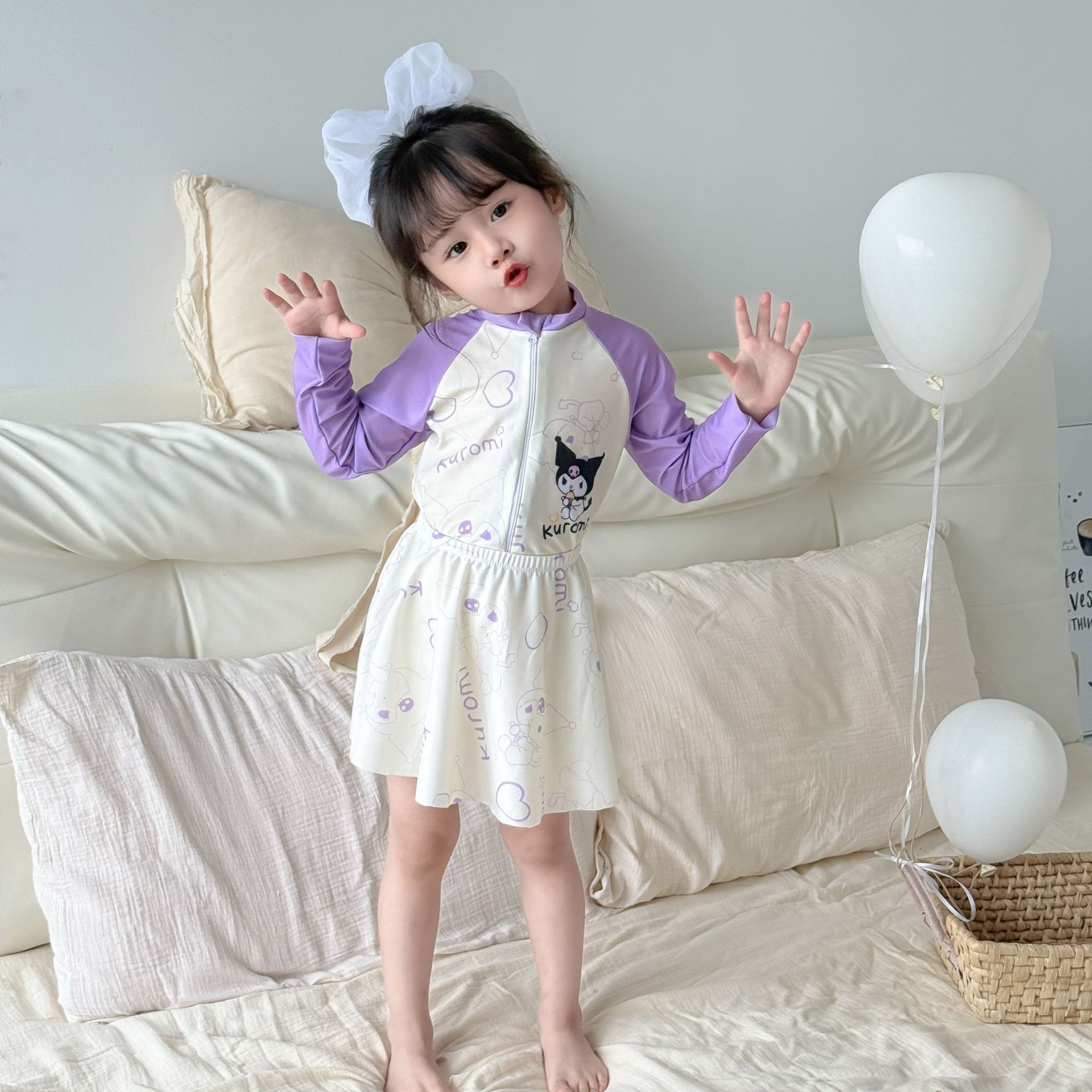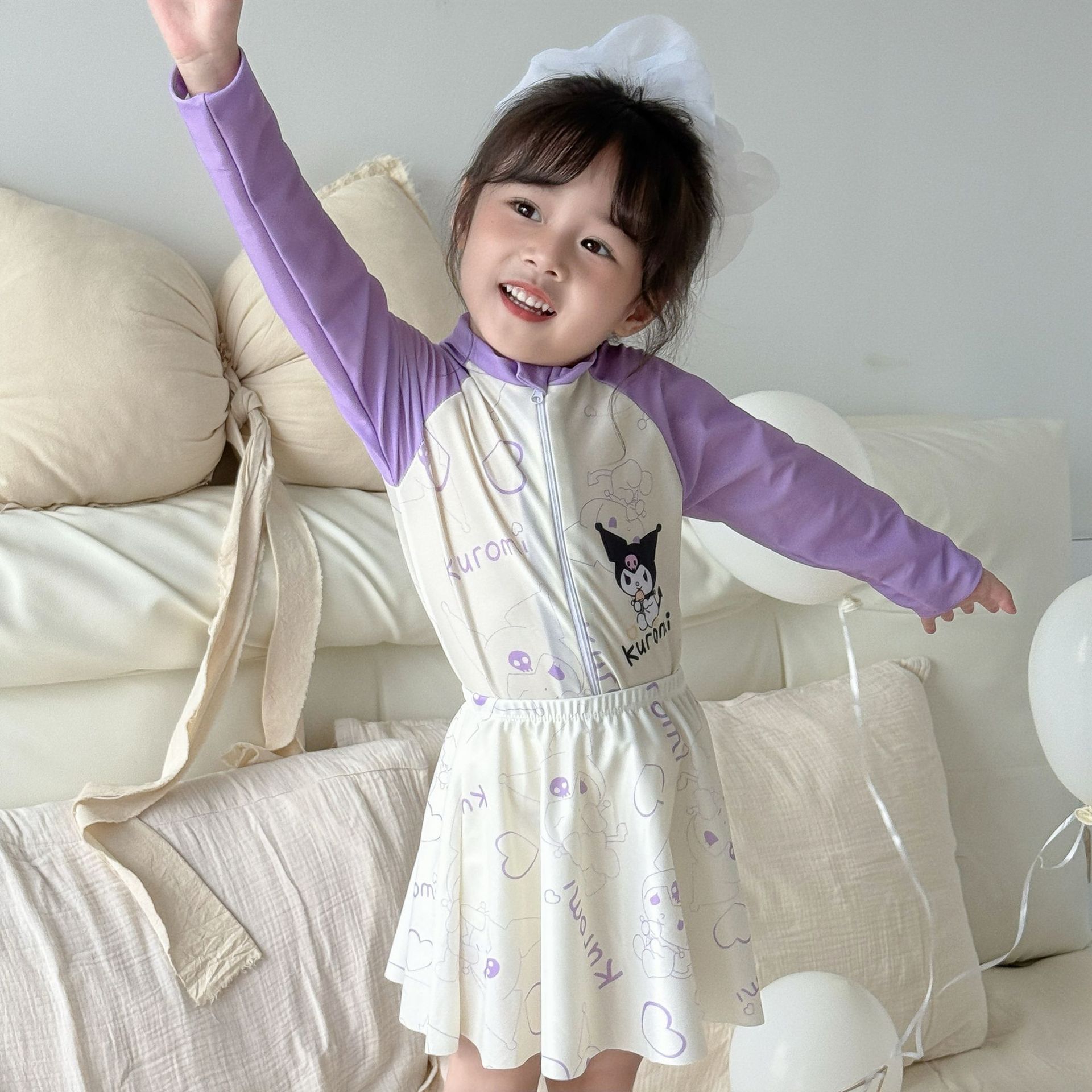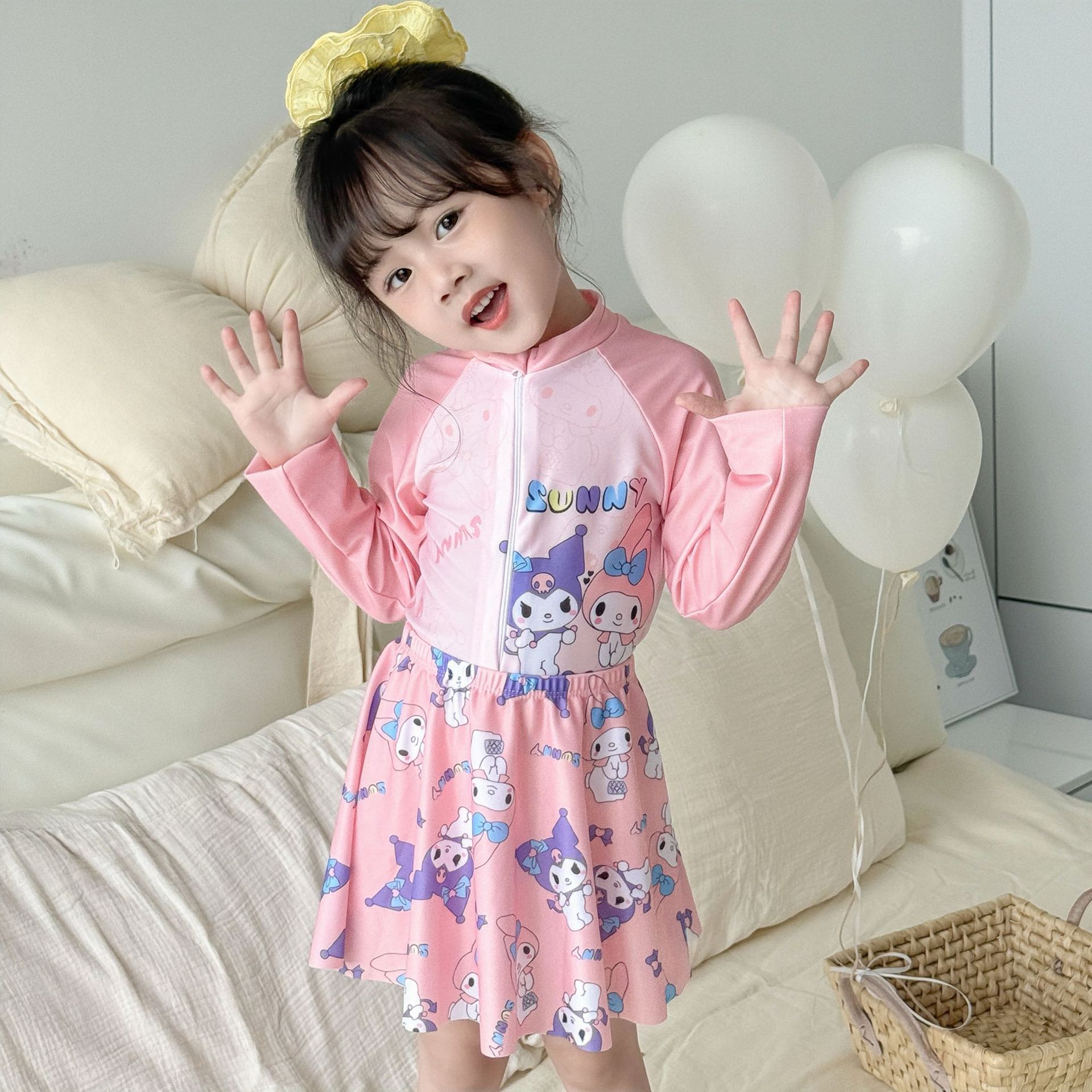 어린이 수영복 여아용 새로운 투피스 긴팔 자외선 차단 원피스 귀엽고 단정한 여아용 스커트형 수영복스토어 가기