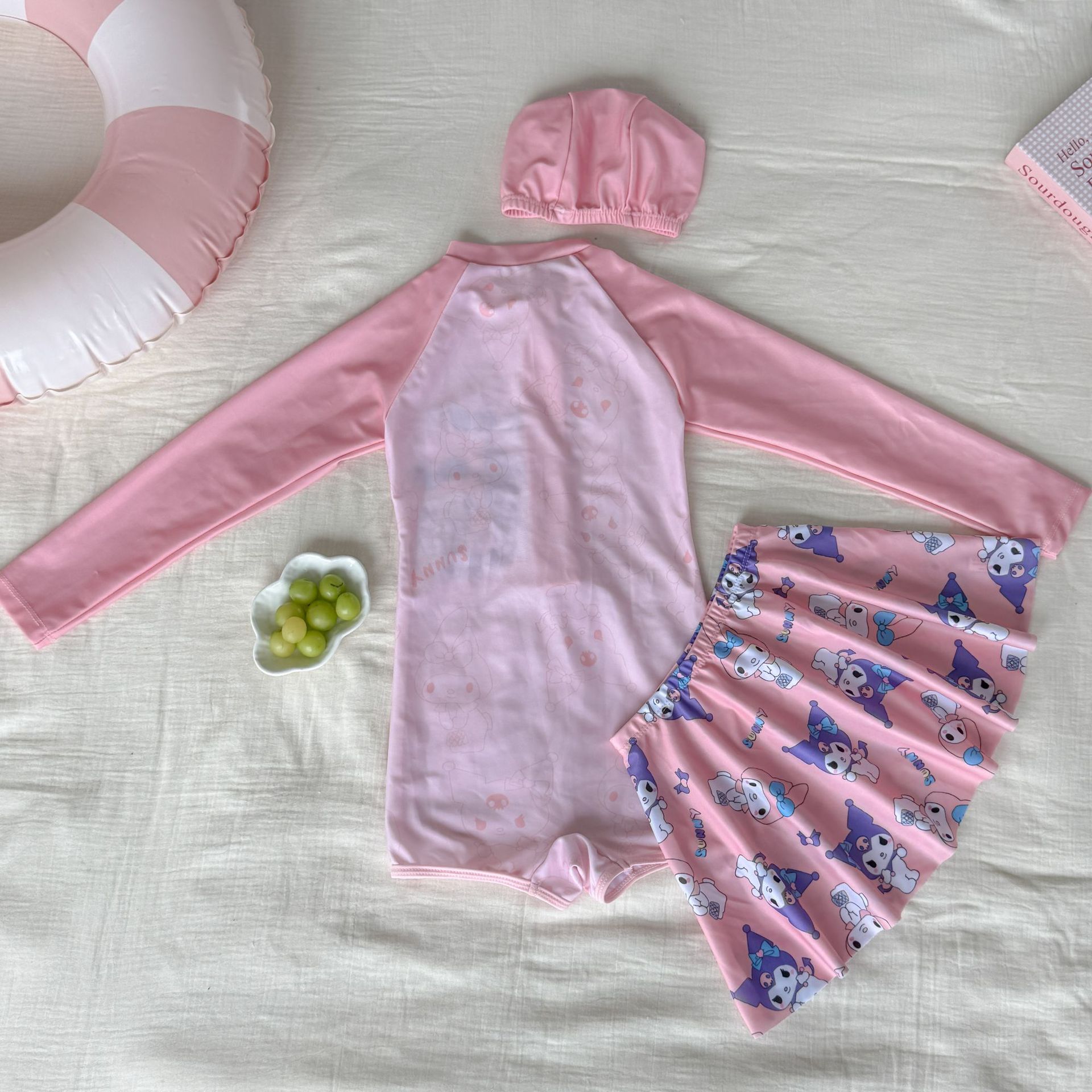 어린이 수영복 여아용 새로운 투피스 긴팔 자외선 차단 원피스 귀엽고 단정한 여아용 스커트형 수영복