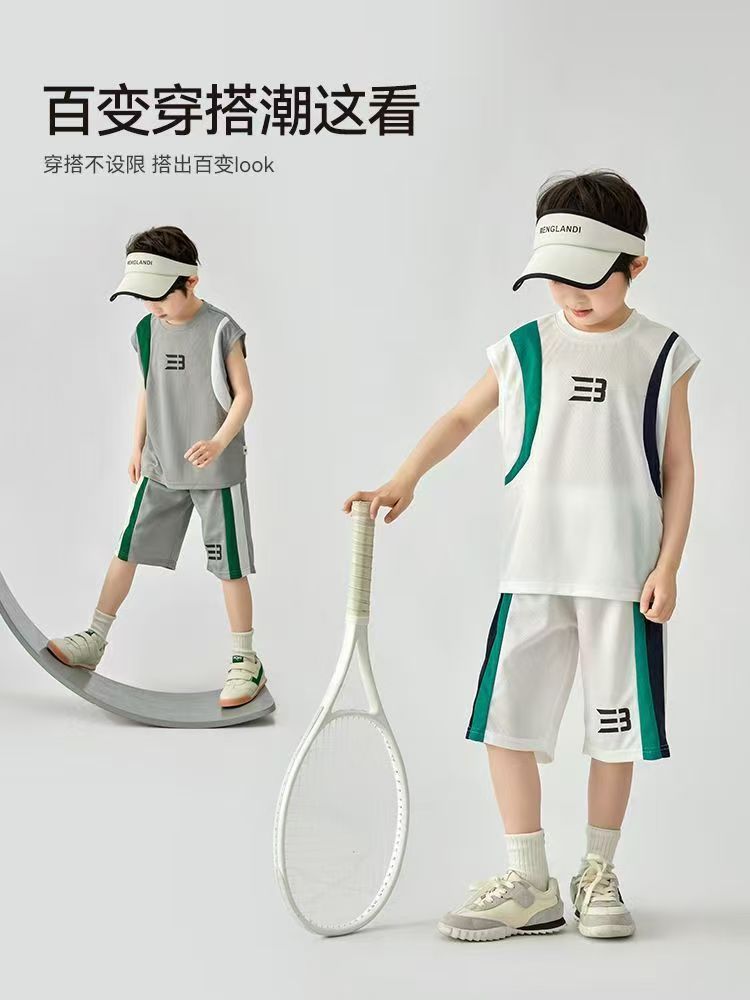 남아 정장, 아동복, 아동 캐주얼 운동복, 중대형 아동 여름 통기성 반팔 의류, 트렌디스토어 가기