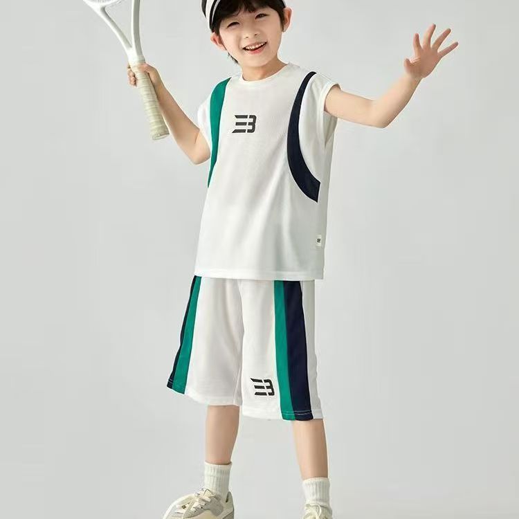 남아 정장, 아동복, 아동 캐주얼 운동복, 중대형 아동 여름 통기성 반팔 의류, 트렌디